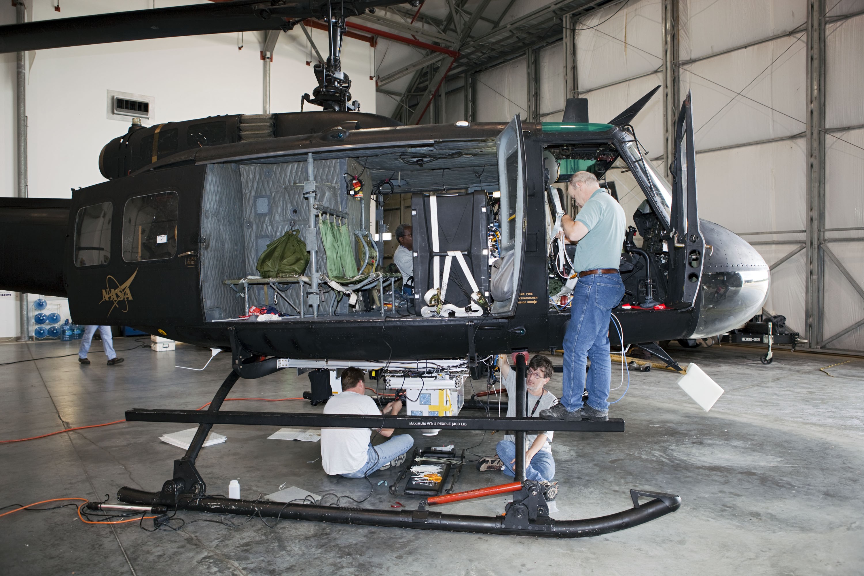 CAPE CANAVERAL, Fla. – Near the Shuttle Landing Facility at NASA's Kennedy Space Center in Florida, a space agency team installed and tested hazard avoidance instrumentation on a Huey helicopter. Led by the Johnson Space Center and supported by Jet Propulsion Laboratory and Langley Research Center, the Autonomous Landing Hazard Avoidance Technology, or ALHAT, laser system provides a planetary lander the ability to precisely land safely on a surface while detecting any dangerous obstacles such as rocks, holes and slopes. Just north of Kennedy's Shuttle Landing Facility runway, a rock- and crater-filled planetary scape has been built so engineers can test the ability to negotiate away from risks. Photo credit: NASA/Dmitri Gerondidakis