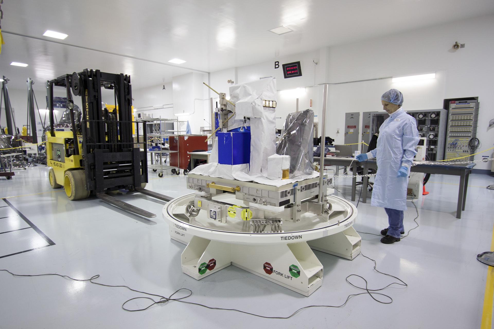 CAPE CANAVERAL, Fla. -- Inside the Space Station Processing Facility at NASA's Kennedy Space Center in Florida, technicians prepare to move the Space Test Program-Houston 4 experiment before installing the shipping container cover that will enclose it. The experiment is one of the payloads processed at Kennedy that will be flown to Japan for the HTV-4 launch to the station, which is currently scheduled for this summer. Photo credit: NASA/Jim Grossmann