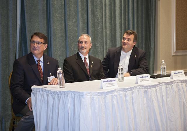 CAPE CANAVERAL, Fla. - NASA Commercial Crew Program, or CCP, partner representatives participate in the National Space Club Florida Committee's June meeting near the Kennedy Space Center. From left are The Boeing Company's vice president and program manager of Commercial Programs John Mulholland, Sierra Nevada Corporation, or SNC, Space Systems chief systems engineer Dan Ciccateri, and Space Exploration Technologies, or SpaceX, vice president of government sales Adam Harris. CCP Program Manager Ed Mango and the partners talked about plans to increase commercial activities on Florida’s space coast to send astronauts to low-Earth orbit. To learn more about the Commercial Crew Program, visit www.nasa.gov/commercialcrew. Photo credit: Kim Shiflett