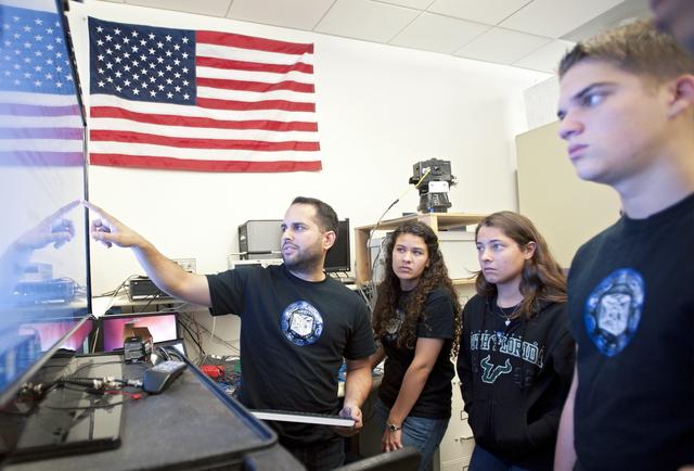 SAN LUIS OBISPO, Calif. – NASA mentors and the student launch team for the StangSat and Polysat go through final checks in the CubeSat lab facility at California Polytechnic Institute, or CalPoly. The payloads, which include sensors and equipment carefully packaged into 4-inch cubes, will ride in the body of a Garvey Spacecraft Corporation's Prospector P-18D rocket during a June 15 launch on a high-altitude, suborbital flight. Collectively known as CubeSats, the satellites will record shock, vibrations and heat inside the rocket. They will not be released during the test flight, but the results will be used to prove or strengthen their designs before they are carried into orbit in 2014 on a much larger rocket. A new, lightweight carrier is also being tested for use on future missions to deploy the small spacecraft. The flight also is being watched closely as a model for trying out new or off-the-shelf technologies quickly before putting them in the pipeline for use on NASA's largest launchers. Built by several different organizations, including a university, a NASA field center and a high school, the spacecraft are four-inch cubes designed to fly on their own eventually, but will remain firmly attached to the rocket during the upcoming mission. For more information, visit http://www.nasa.gov/mission_pages/smallsats/elana/cubesatlaunchpreview.html Photo credit: VAFB/Kathi Peoples