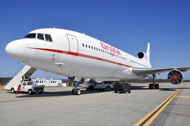 VANDENBERG ABF, Calif. - The Orbital Sciences L-1011 aircraft called "Stargazer" arrives at Vandenberg Air Force Base for the upcoming launch of the company's Pegasus XL rocket lifting NASA's IRIS solar observatory into orbit. The aircraft will carry the winged rocket to an altitude of 39,000 feet before releasing the Pegasus so its own motors can ignite to send the IRIS into space. The L-1011 is a modified airliner equipped to hold the Pegasus under its body safely. IRIS, short for Interface Region Imaging Spectrograph, is being prepared for launch from Vandenberg June 26. IRIS will open a new window of discovery by tracing the flow of energy and plasma through the chromospheres and transition region into the sun’s corona using spectrometry and imaging. IRIS fills a crucial gap in our ability to advance studies of the sun-to-Earth connection by tracing the flow of energy and plasma through the foundation of the corona and the region around the sun known as the heliosphere. Photo credit: VAFB/Randy Beaudoin