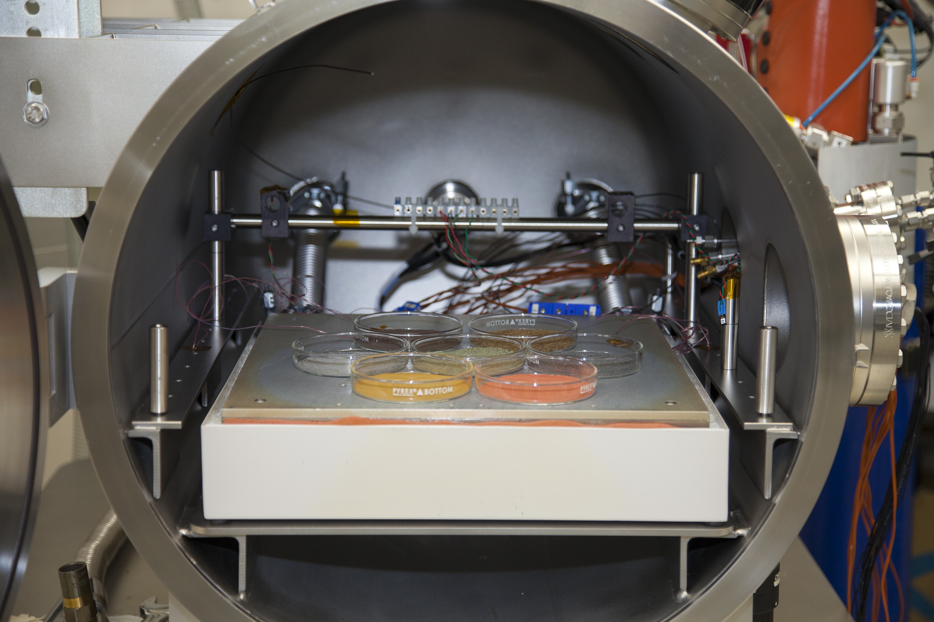 CAPE CANAVERAL, Fla. -- Inside the Space Life Sciences Laboratory near NASA’s Kennedy Space Center in Florida, the Mars Simulation Chamber is being prepared for the Microorganisms in the Stratosphere, or MIST, mission support. The chamber allows MIST scientists and engineers to simulate the stratosphere prior to high altitude flight experiments. The MIST mission will fly a small biological payload aboard a blimp in July to measure microbial survival and cellular responses to exposure in the upper atmosphere. Later in the year, the MIST mission will deploy samples at even higher altitudes in the stratosphere using scientific balloons. Photo credit: NASA/Daniel Casper