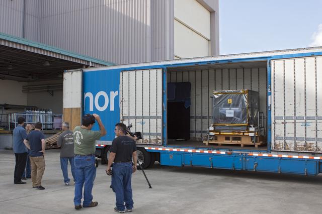 CAPE CANAVERAL, Fla. -- The Optical Payload for Lasercomm Science, or OPALS, an optical technology demonstration experiment, arrives at the Space Station Processing Facility at NASA’s Kennedy Space Center in Florida from the agency’s Jet Propulsion Laboratory in Pasadena, Calif. NASA will use the International Space Station to test OPALS’ communications technology that could dramatically improve spacecraft communications, enhance commercial missions and strengthen transmission of scientific data. The experiment is slated to fly later this year aboard a SpaceX Dragon commercial resupply mission to the space station. The mission is expected to run 90 days after installation on the outside of the station. For more information about OPALS, visit: http://go.nasa.gov/10MMPDO. Photo credit: NASA/Jim Grossmann