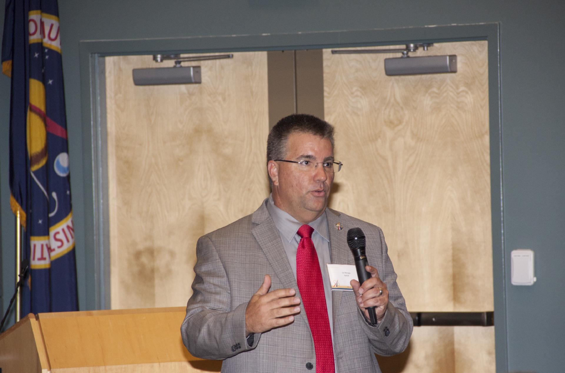 CAPE CANAVERAL, Fla. - Ed Mango, manager of NASA's Commercial Crew Program, or CCP, makes opening remarks at the Commercial Crew Transportation Capability, or CCtCap, Pre-Proposal Conference at Kennedy Space Center in Florida. CCtCap will be the next phase of certification efforts for CCP mission to the International Space Station. The purpose of the conference was to involve aerospace industry representatives in the CCtCap draft Request for Proposal, or RFP, process and provide a greater understanding for both parties before the official RFP is released in the fall of 2013. To learn more about CCP, visit www.nasa.gov/commercialcrew. Photo credit: NASA/Jim Grossmann