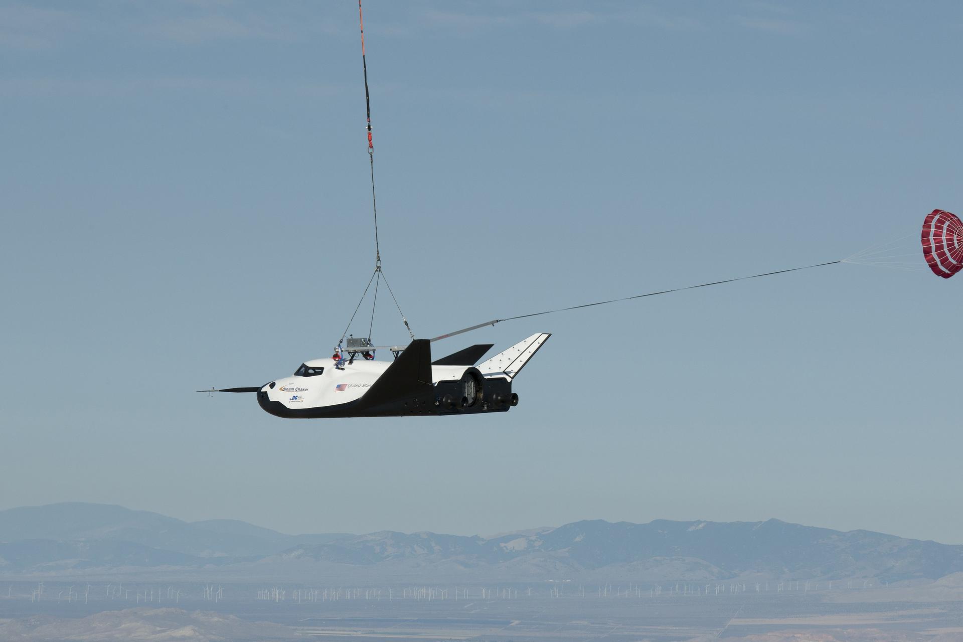 EDWARDS AFB, Calif. - ED13-0300-002 – An Erickson Air-Crane helicopter lifts Sierra Nevada Corporation's Dream Chaser flight vehicle during a captive-carry flight test. The test was a rehearsal for free flights at Edwards later this year. The spacecraft is under development in partnership with NASA's Commercial Crew Program. Although the spacecraft is designed for crew members, the vehicle will not have anyone onboard during the free flights. Photo credit: NASA/Carla Thomas