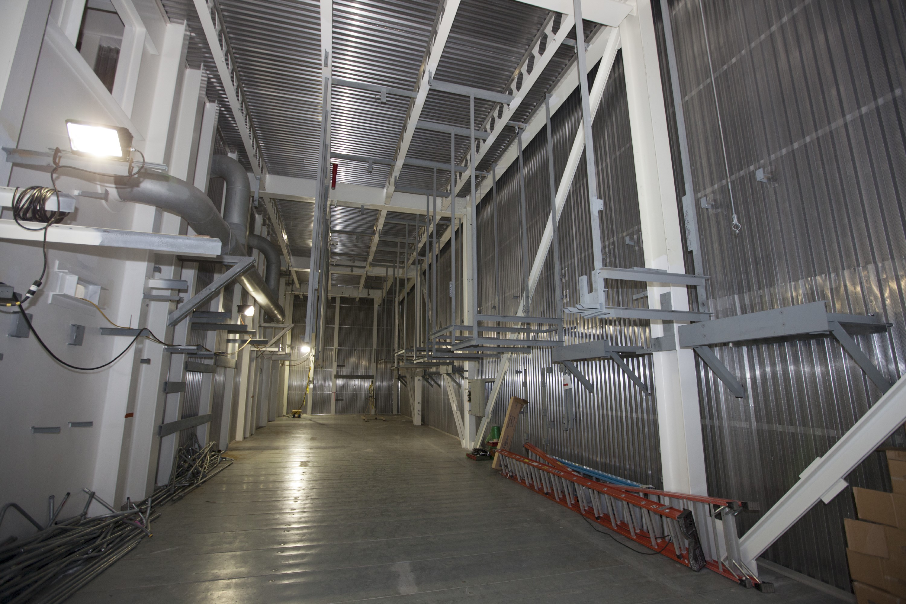 CAPE CANAVERAL, Fla. -- All is quiet and orderly inside the mobile launcher, or ML, at the park site adjacent to the Vehicle Assembly Building, or VAB, at NASA's Kennedy Space Center in Florida. Preparations are underway for modifications to begin to the outside of the 355-foot-tall ML structure this fall. NASA’s Ground Systems Development and Operations Program, or GSDO, is preparing the ML to support NASA’s Space Launch System, the heavy-lift rocket that will launch astronauts into deep space on future exploration missions. For more information, visit http://www.nasa.gov/exploration/systems/ground/index.html. Photo credit: NASA/Kim Shiflett