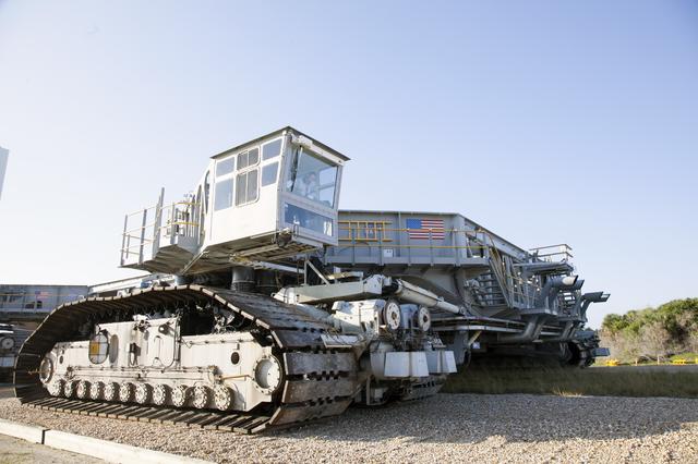 CAPE CANAVERAL, Fla. -- Crawler-transporter 1 continues its trek from the crawler transporter maintenance facility to Launch Pad 39A at NASA’s Kennedy Space Center in Florida. New jacking, equalizing and leveling, or JEL, hydraulic cylinders were installed on CT-1 and are being tested for increased load carrying capacity and reliability. The Ground Systems Development and Operations Program at Kennedy continues to upgrade the crawler-transporter as part of its general maintenance. CT-1 could be available to carry a variety of launch vehicles to the launch pad. Two crawler-transporters were used to carry the mobile launcher platform and space shuttle to Launch Complex 39 for space shuttle launches for 30 years. Photo credit: NASA/Daniel Casper