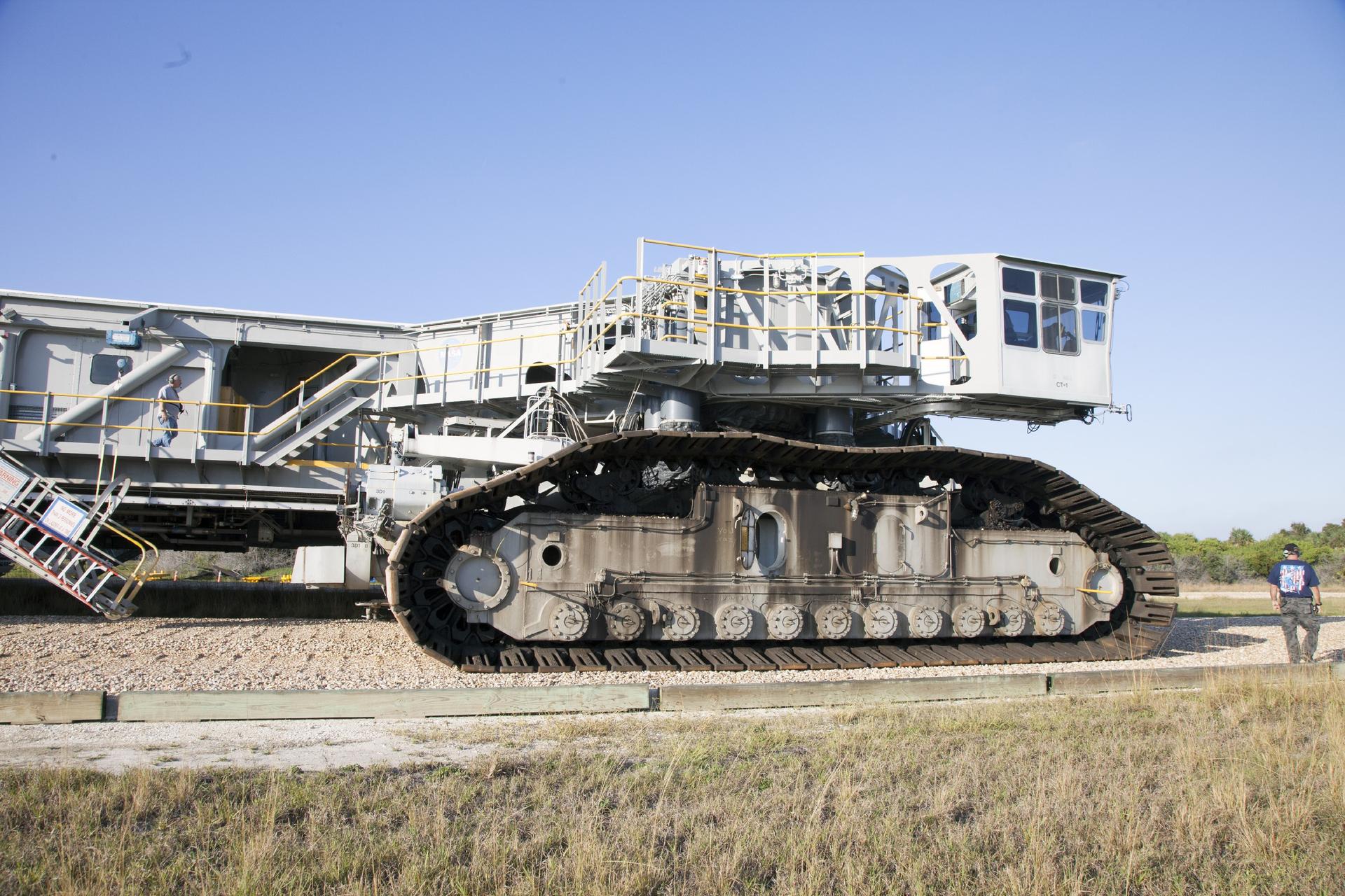 CAPE CANAVERAL, Fla. -- Crawler-transporter 1 continues its trek along the crawlerway to Launch Pad 39A at NASA’s Kennedy Space Center in Florida. New jacking, equalizing and leveling, or JEL, hydraulic cylinders were installed on CT-1 and are being tested for increased load carrying capacity and reliability. The Ground Systems Development and Operations Program at Kennedy continues to upgrade the crawler-transporter as part of its general maintenance. CT-1 could be available to carry a variety of launch vehicles to the launch pad. Two crawler-transporters were used to carry the mobile launcher platform and space shuttle to Launch Complex 39 for space shuttle launches for 30 years. Photo credit: NASA/Daniel Casper