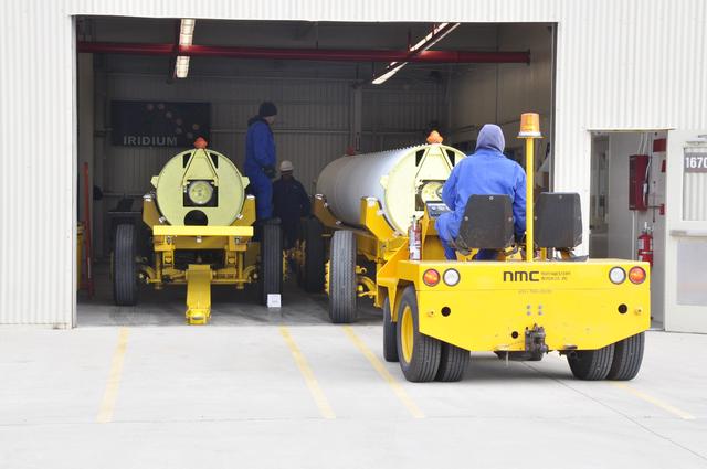 VANDENBERG AIR FORCE BASE, Calif. -- A solid rocket motor is moved on a transporter to the Solid Rocket Motor Processing Facility at Vandenberg Air Force Base in California. The motor will be attached to the United Launch Alliance Delta II rocket slated to launch NASA's Orbiting Carbon Observatory-2, or OCO-2, spacecraft in July 2014. OCO-2 will collect precise global measurements of carbon dioxide in the Earth's atmosphere. Scientists will analyze this data to improve our understanding of the natural processes and human activities that regulate the abundance and distribution of this important atmospheric gas. Photo credit: NASA/Randy Beaudoin