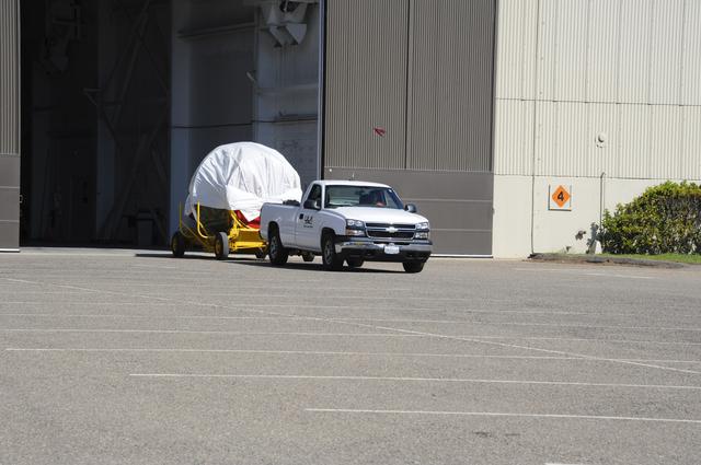 VANDENBERG AIR FORCE BASE, Calif. – The second stage for NASA's Orbiting Carbon Observatory-2 mission, or OCO-2, is being towed from the Building 836 hangar to the Horizontal Processing Facility at Space Launch Complex 2 on Vandenberg Air Force Base in California. OCO-2 is scheduled to launch aboard a United Launch Alliance Delta II rocket in July. The rocket's second stage will insert OCO-2 into a polar Earth orbit. OCO-2 will collect precise global measurements of carbon dioxide in the Earth's atmosphere and provide scientists with a better idea of the chemical compound's impacts on climate change. Scientists will analyze this data to improve our understanding of the natural processes and human activities that regulate the abundance and distribution of this important atmospheric gas. To learn more about OCO-2, visit http://oco.jpl.nasa.gov. Photo credit: NASA/Arron Tauman, 30th Space Wing, VAFB
