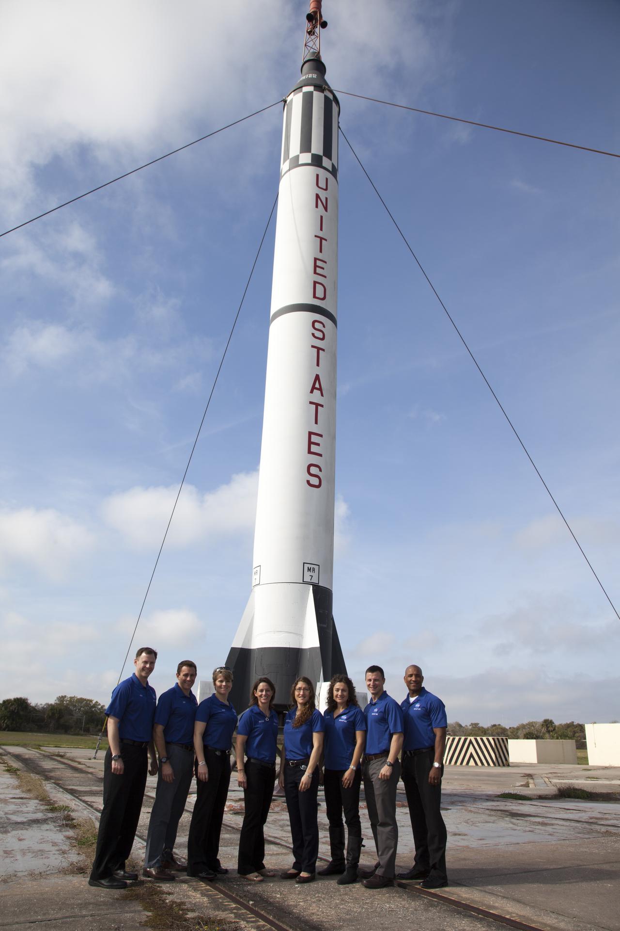 CAPE CANAVERAL, Fla. – NASA astronaut candidates Tyler "Nick" Hague, from left, Josh Cassada, Anne McClain, Nicole Mann, Christina Hammock, Jessica Meir, Andrew Morgan and Victor Glover visit Launch Complex 5 at Cape Canaveral Air Force Station in Florida, adjacent to NASA's Kennedy Space Center. The launch pad is the place where Mercury astronaut Alan Shepard lifted off on May 5, 1961 to become America's first man in space. The astronaut class of 2013 was selected by NASA after an extensive year-and-a-half search. The new group will help the agency push the boundaries of exploration and travel to new destinations in the solar system. To learn more about the astronaut class of 2013, visit: http://www.nasa.gov/astronauts/2013astroclass.html Photo credit: NASA/Frankie Martin