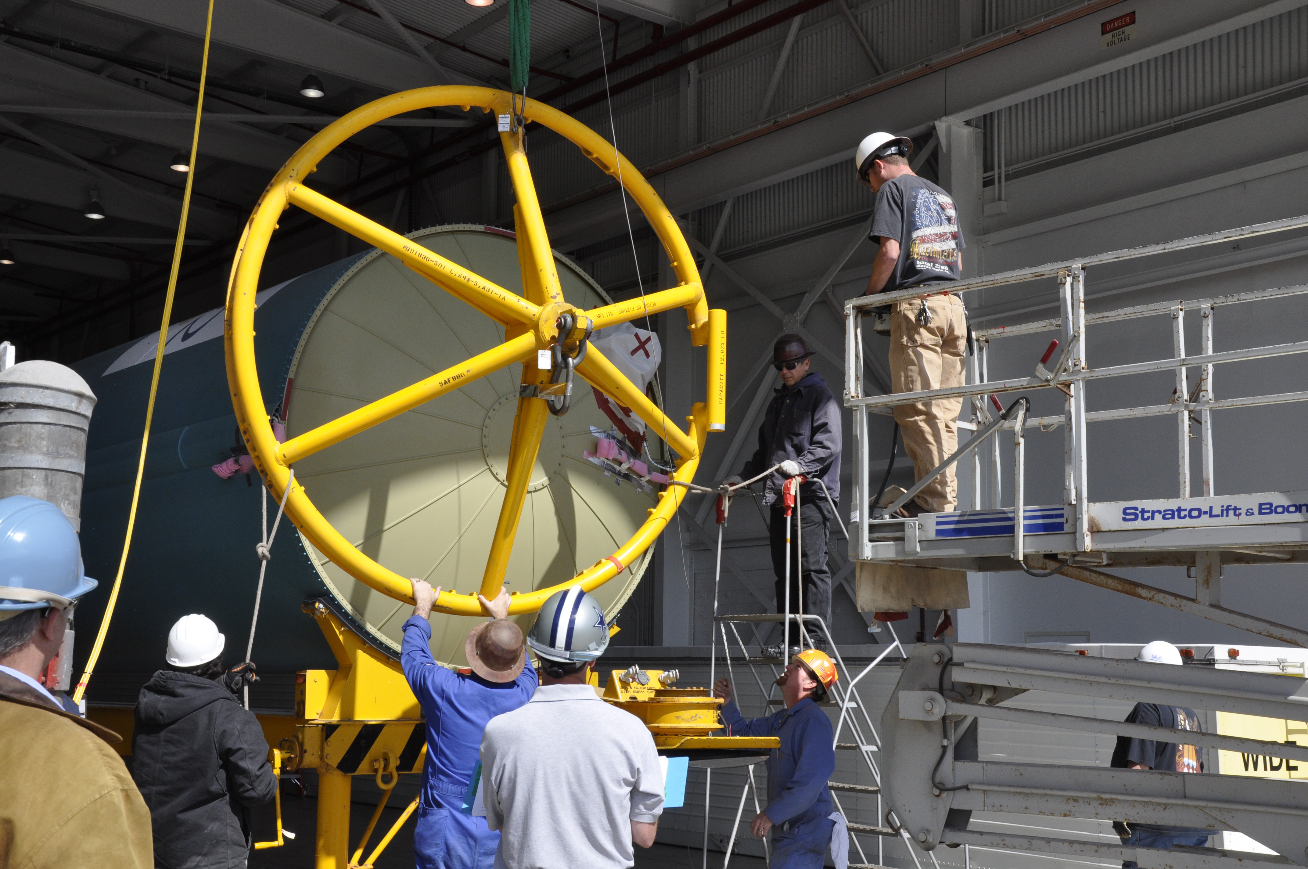 VANDENBERG AIR FORCE BASE, Calif. – Workers secure the Delta first-stage booster for NASA's Orbiting Carbon Observatory-2 mission, or OCO-2, onto a transportation hardware cradle in the Building 836 hangar at Space Launch Complex 2 on Vandenberg Air Force Base in California. OCO-2 is scheduled to launch aboard a United Launch Alliance Delta II rocket in July. The observatory will collect precise global measurements of carbon dioxide in the Earth's atmosphere and provide scientists with a better idea of the chemical compound's impacts on climate change. Scientists will analyze this data to improve our understanding of the natural processes and human activities that regulate the abundance and distribution of this important atmospheric gas. To learn more about OCO-2, visit http://oco.jpl.nasa.gov. Photo credit: NASA/Randy Beaudoin