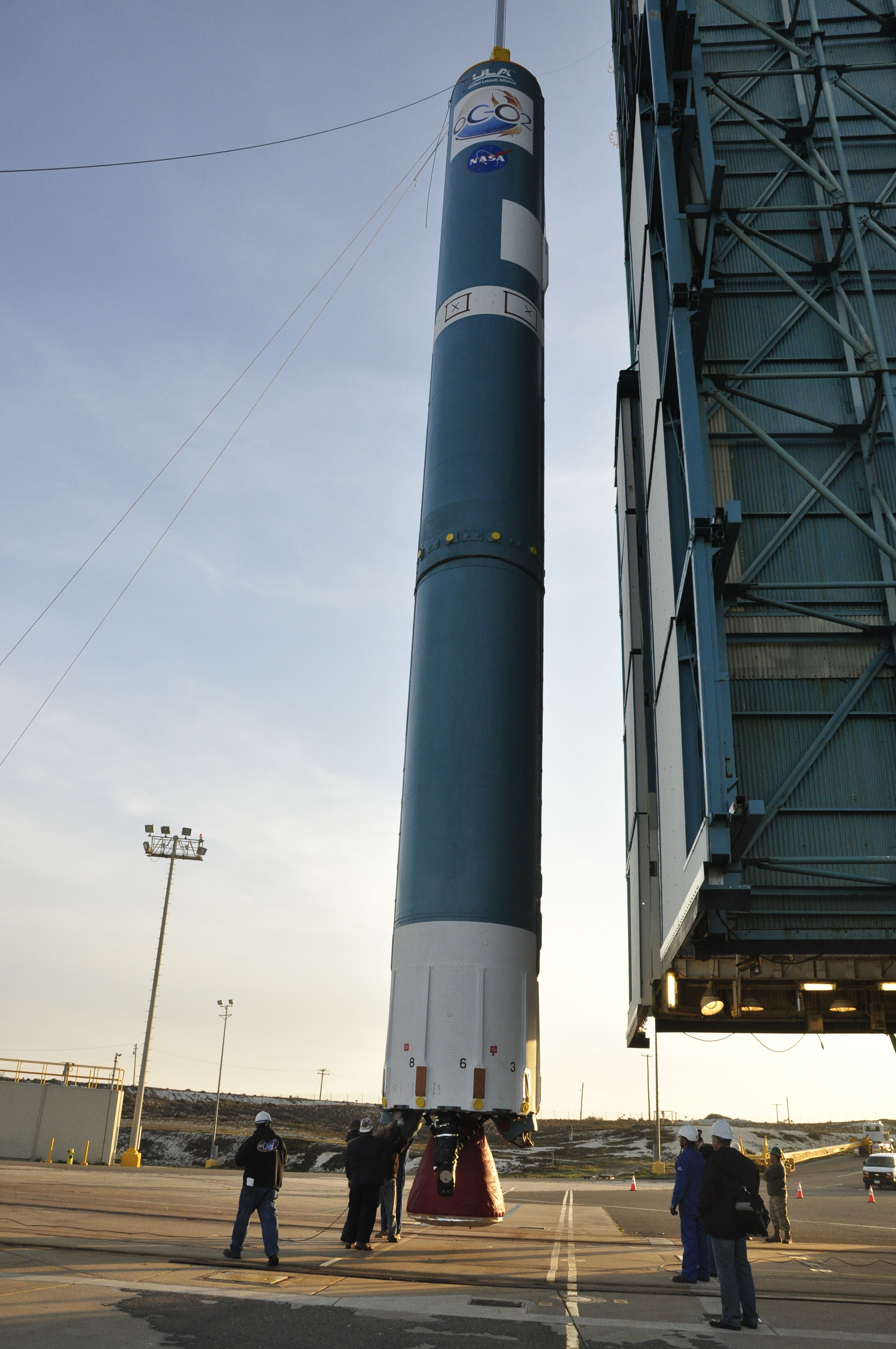 VANDENBERG AIR FORCE BASE, Calif. – The United Launch Alliance Delta II rocket for NASA's Orbiting Carbon Observatory-2 mission, or OCO-2, hangs in a vertical position beside the mobile service tower at Space Launch Complex 2 on Vandenberg Air Force Base in California. Launch is scheduled for July 2014. The observatory will collect precise global measurements of carbon dioxide in the Earth's atmosphere and provide scientists with a better idea of the chemical compound's impacts on climate change. Scientists will analyze this data to improve our understanding of the natural processes and human activities that regulate the abundance and distribution of this important atmospheric gas. To learn more about OCO-2, visit http://oco.jpl.nasa.gov. Photo credit: NASA/Randy Beaudoin