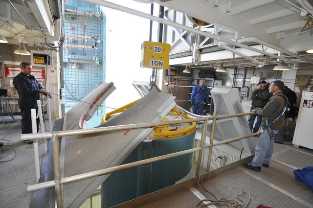 VANDENBERG AIR FORCE BASE, Calif. – Workers in the environmental enclosure, or clean room, at the top of the mobile service tower at Space Launch Complex 2 on Vandenberg Air Force Base in California steady the upper end of the United Launch Alliance Delta II rocket for NASA's Orbiting Carbon Observatory-2 mission, or OCO-2, as work platforms move into position around it. Launch is scheduled for July 2014. The observatory will collect precise global measurements of carbon dioxide in the Earth's atmosphere and provide scientists with a better idea of the chemical compound's impacts on climate change. Scientists will analyze this data to improve our understanding of the natural processes and human activities that regulate the abundance and distribution of this important atmospheric gas. To learn more about OCO-2, visit http://oco.jpl.nasa.gov. Photo credit: NASA/Randy Beaudoin