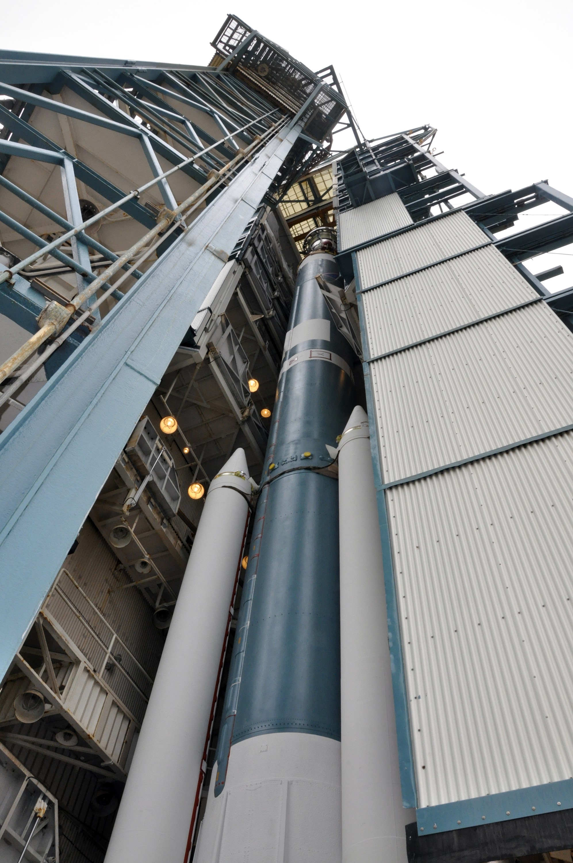 VANDENBERG AIR FORCE BASE, Calif. – The Delta II second stage for NASA's Orbiting Carbon Observatory-2 mission, or OCO-2, is positioned atop the rocket's first stage in the mobile service tower at Space Launch Complex 2 on Vandenberg Air Force Base in California. Operations are underway to mate the stages for launch. OCO-2 is scheduled to launch aboard a United Launch Alliance Delta II rocket in July. The rocket's second stage will insert OCO-2 into a polar Earth orbit. OCO-2 will collect precise global measurements of carbon dioxide in the Earth's atmosphere and provide scientists with a better idea of the chemical compound's impacts on climate change. Scientists will analyze this data to improve our understanding of the natural processes and human activities that regulate the abundance and distribution of this important atmospheric gas. To learn more about OCO-2, visit http://oco.jpl.nasa.gov. Photo credit: NASA/Randy Beaudoin