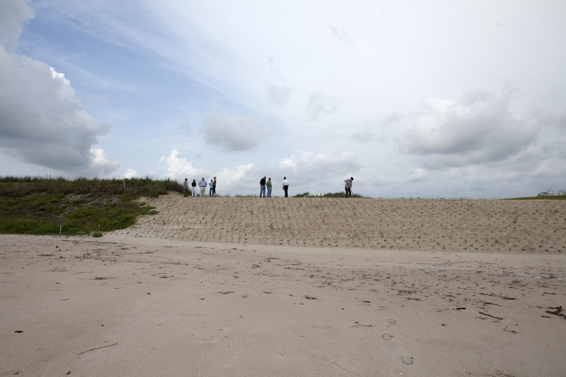 CAPE CANAVERAL, Fla. -- At the Kennedy Space Center in Florida, guests survey restored sand dunes along a 1.2-mile stretch of shoreline near Launch Pads 39A and B. Constant pounding from tropical storms, such as Hurricane Sandy in October of 2012, other weather systems and higher than usual tides, destroyed sand dunes protecting infrastructure at the spaceport. Photo credit: NASA/Dan Casper