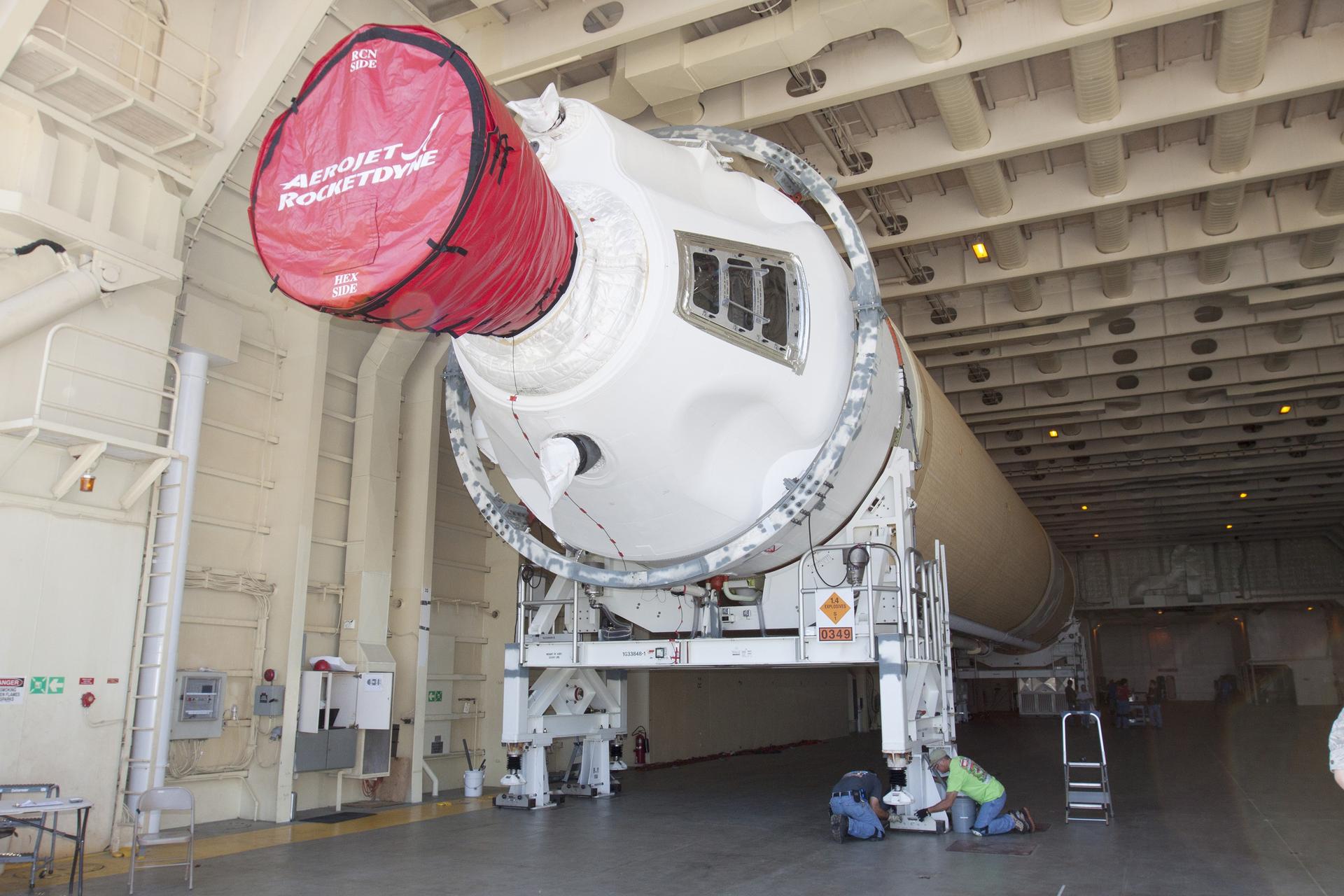 CAPE CANAVERAL, Fla. -- The port booster for the United Launch Alliance Delta IV Heavy for Exploration Flight Test-1, or EFT-1, is being offloaded from the barge at the U.S. Army Outpost wharf at Port Canaveral in Florida and will be transported to the Horizontal Integration Facility, or HIF, at Space Launch Complex 37 on Cape Canaveral Air Force Station. The upper stage and spacecraft adapter arrived with the booster and were transported to the HIF on May 6. At the HIF, all three booster stages will be processed and checked out before being moved to the nearby launch pad and hoisted into position. The spacecraft adapter will connect Orion to the ULA Delta IV, and also will connect Orion to NASA's new rocket, the Space Launch System, on its first mission in 2017. During the EFT-1 mission, Orion will travel farther into space than any human spacecraft has gone in more than 40 years. The data gathered during the flight will influence design decisions, validate existing computer models and innovative new approaches to space systems development, as well as reduce overall mission risks and costs for later Orion flights. Liftoff of Orion on EFT-1 is planned for fall 2014. Photo credit: NASA/Kim Shiflett