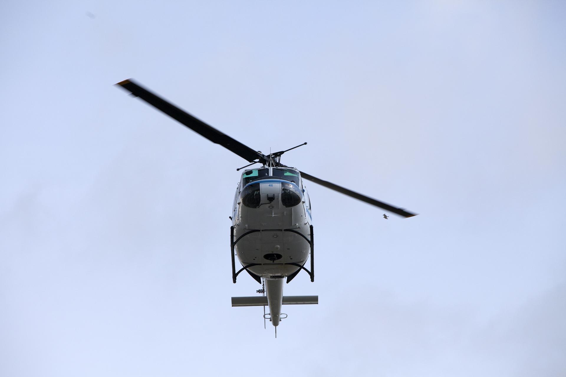 -- CAPE CANAVERAL, Fla. -- At NASA's Kennedy Space Center in Florida, an agency helicopter flies in to land during a training exercise. The activity taking place in Kennedy's Launch Complex 39 turn-basin parking lot was only one of several drills. It was part of a new training program that was developed by Kennedy's Fire Rescue department along with NASA Aircraft Operations to sharpen the skills needed to help rescue personnel learn how to collaborate with helicopter pilots in taking injured patients to hospitals as quickly as possible. Photo credit: NASA/Dan Casper