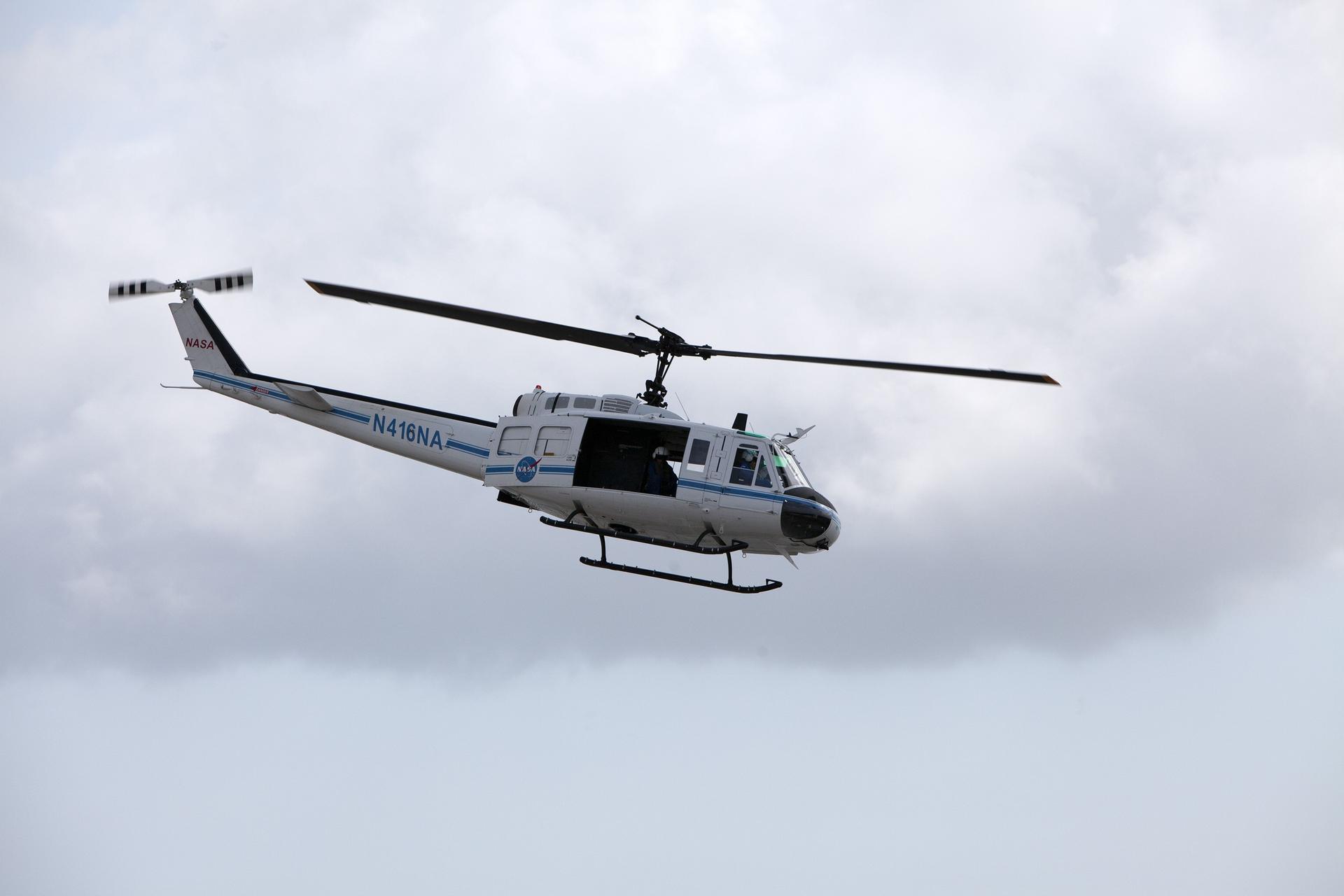 CAPE CANAVERAL, Fla. -- At NASA's Kennedy Space Center in Florida, agency helicopter takes off during a training exercise. The activity taking place in Kennedy's Launch Complex 39 turn-basin parking lot was only one of several drills. It was part of a new training program that was developed by Kennedy's Fire Rescue department along with NASA Aircraft Operations to sharpen the skills needed to help rescue personnel learn how to collaborate with helicopter pilots in taking injured patients to hospitals as quickly as possible. Photo credit: NASA/Dan Casper