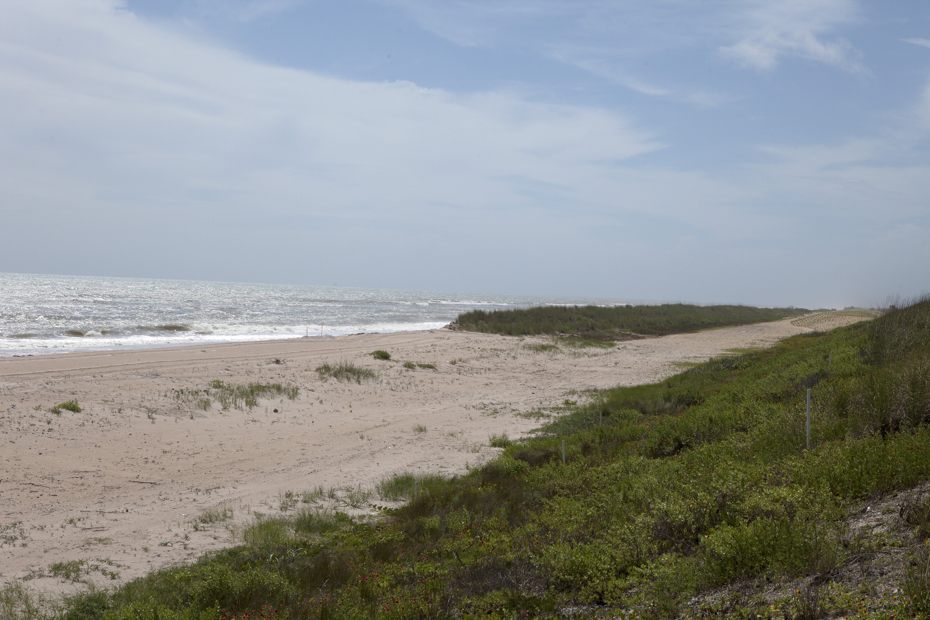 CAPE CANAVERAL, Fla. -- At the Kennedy Space Center in Florida, sand dunes have been restored along a 1.2 mile stretch of shoreline near Launch Pads 39A and B. As part of a six-month effort to help prevent further erosion, 180,000 shrubs, including grasses, sunflowers, vines, sea grapes and palmettos were planted. Constant pounding from tropical storms, such as Hurricane Sandy in October of 2012, other weather systems and higher than usual tides, destroyed sand dunes protecting infrastructure at the spaceport. Photo credit: NASA/Dan Casper