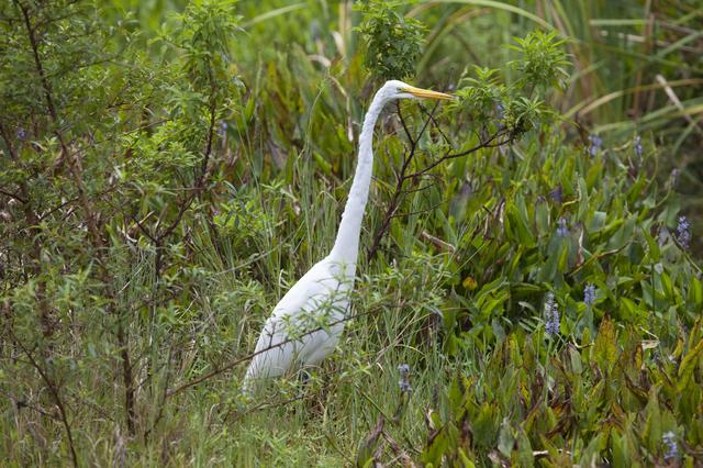 CAPE CANAVERAL, Fla. -- A great egret attempts to conceal itself in the tall grass on NASA's Kennedy Space Center in Florida. The undeveloped property on Kennedy Space Center is managed by the U.S. Fish and Wildlife Service through the Merritt Island National Wildlife Refuge. The refuge provides a habitat for a plethora of wildlife, including 330 species of birds. For information on the refuge, visit http://www.fws.gov/merrittisland/Index.html. Photo credit: NASA/Daniel Casper