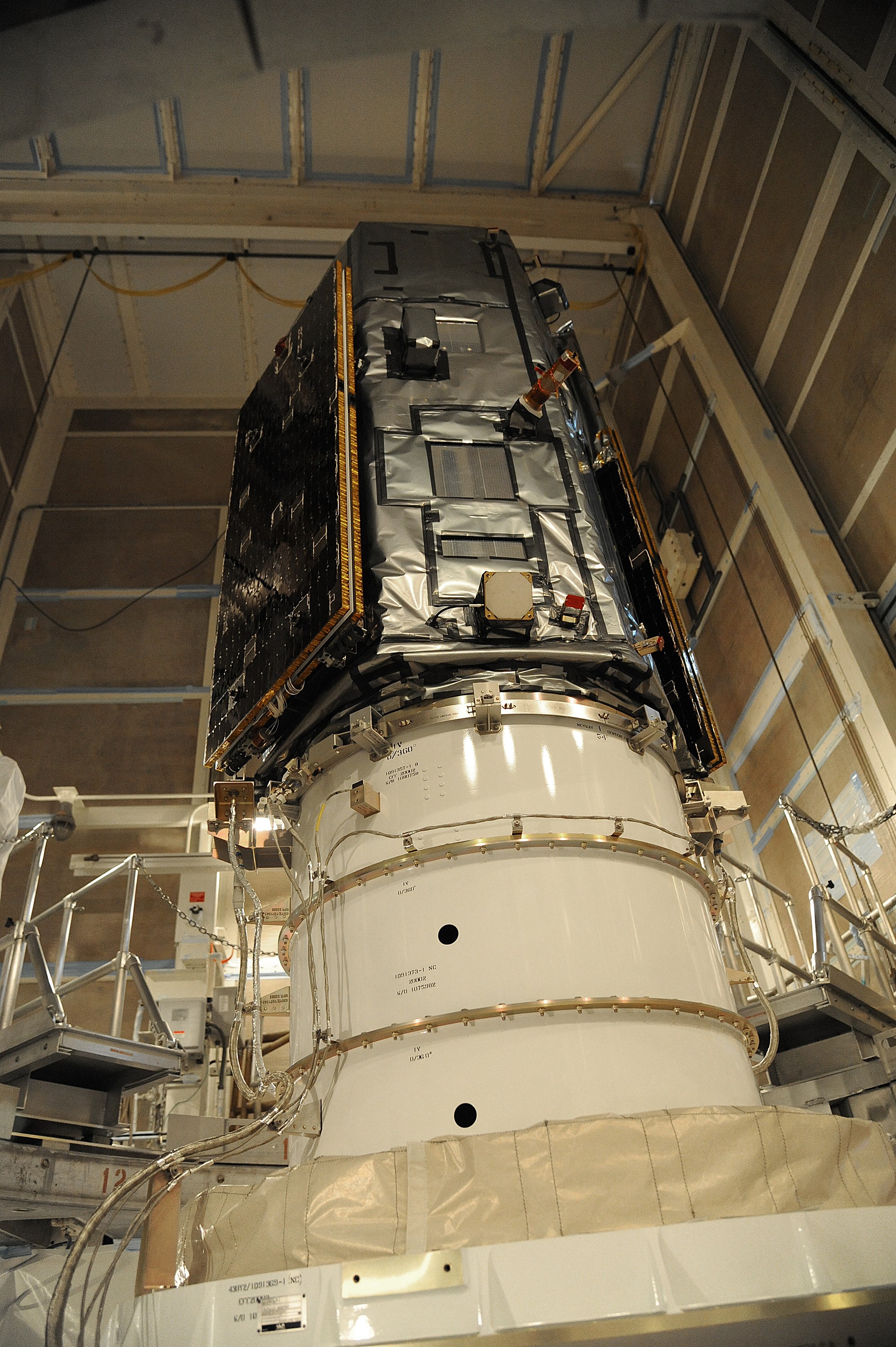 VANDENBERG AIR FORCE BASE, Calif. – NASA's Orbiting Carbon Observatory-2, or OCO-2, satellite sits atop a United Launch Alliance Delta II rocket prior to encapsulation in its payload fairing at Space Launch Complex 2 at Vandenberg Air Force Base in California. Launch is scheduled for 2:56 a.m. PDT 5:56 a.m. EDT on July 1. OCO-2 is NASA’s first mission dedicated to studying atmospheric carbon dioxide, the leading human-produced greenhouse gas driving changes in Earth’s climate. OCO-2 will provide a new tool for understanding the human and natural sources of carbon dioxide emissions and the natural "sinks" that absorb carbon dioxide and help control its buildup. The observatory will measure the global geographic distribution of these sources and sinks and study their changes over time. To learn more about OCO-2, visit http://oco.jpl.nasa.gov Photo credit: NASA/Mark Mackley