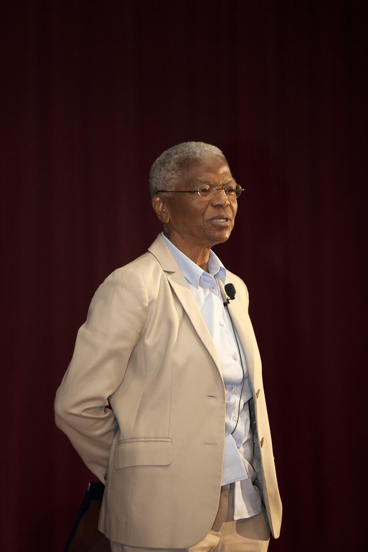 CAPE CANAVERAL, Fla. -- In the KSC Training Auditorium at NASA's Kennedy Space Center in Florida, Dr. Mary Frances Berry relates her personal experiences in the fight for civil liberties to employees gathered for a special event marking the 50th anniversary of the Civil Rights Act of 1964. Berry served as the assistant secretary for education in the U.S. Department of Health, Education and Welfare HEW between 1977 and 1980. From 1980 to 2004, she was a member of the U.S. Commission on Civil Rights, serving as chair from 1993 to 2004. Among Berry's many honors are the NAACP's Roy Wilkins Award, the Rosa Parks Award of the Southern Christian Leadership Conference, and the Ebony Magazine Black Achievement Award. She is one of 75 women featured in the book "I Dream a World: Portraits of Black Women Who Changed America." Sienna College Research Institute and the Women's Hall of Fame also designated her one of "America's Women of the Century." The event was presented by Kennedy's Office of Diversity and Equal Opportunity. For more information about Kennedy Space Center, visit http://www.nasa.gov/kennedy. Photo credit: NASA/Kim Shiflett
