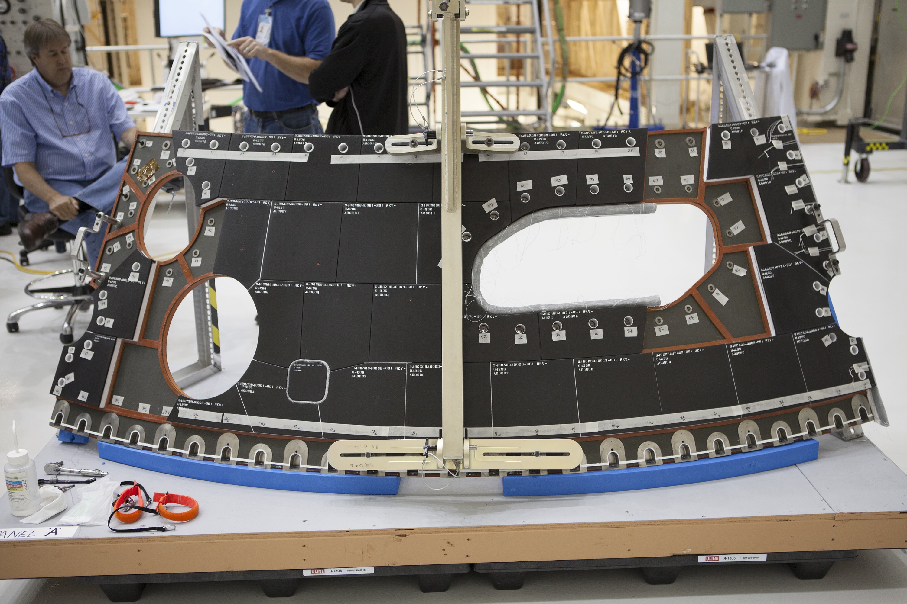 CAPE CANAVERAL, Fla. – Inside the Operations and Checkout Building high bay at NASA's Kennedy Space Center in Florida, technicians prepare a back shell tile panel for installation on the Orion crew module. Preparations are underway for Exploration Flight Test-1, or EFT-1. Orion is the exploration spacecraft designed to carry astronauts to destinations not yet explored by humans, including an asteroid and Mars. It will have emergency abort capability, sustain the crew during space travel and provide safe re-entry from deep space return velocities. The first unpiloted test flight of the Orion is scheduled to launch later this year atop a Delta IV rocket from Cape Canaveral Air Force Station in Florida to an altitude of 3,600 miles above the Earth's surface. The two-orbit, four-hour flight test will help engineers evaluate the systems critical to crew safety including the heat shield, parachute system and launch abort system. For more information, visit http://www.nasa.gov/orion. Photo credit: NASA/Dimitri Gerondidakis
