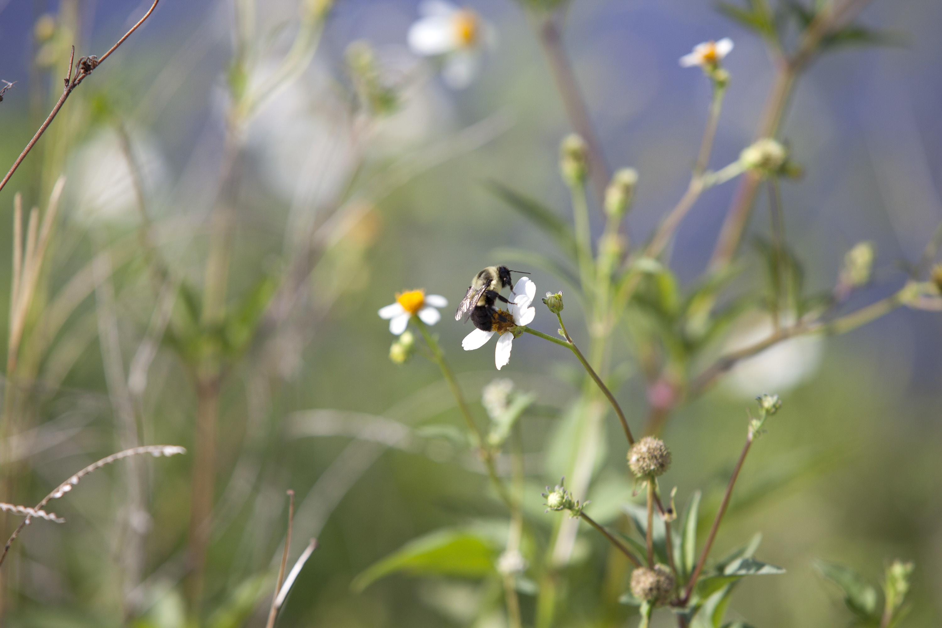 CAPE CANAVERAL, Fla. – A bee goes about his business pollinating the flowers off Schwartz Road on NASA's Kennedy Space Center in Florida. There are 4,000 species of native bees in the United States. The members of the five most common families - Apidae, Halictidae, Andrenidae, Megachilidae, and Colletidae - can be found throughout North America, including in Florida. The undeveloped property on Kennedy Space Center is managed by the U.S. Fish and Wildlife Service through the Merritt Island National Wildlife Refuge. For information on the refuge, visit http://www.fws.gov/merrittisland/Index.html. For information on the alligators prowling the waterways at Kennedy, visit http://www.nasa.gov/content/ancient-creatures-on-the-prowl/. Photo credit: NASA/Daniel Casper