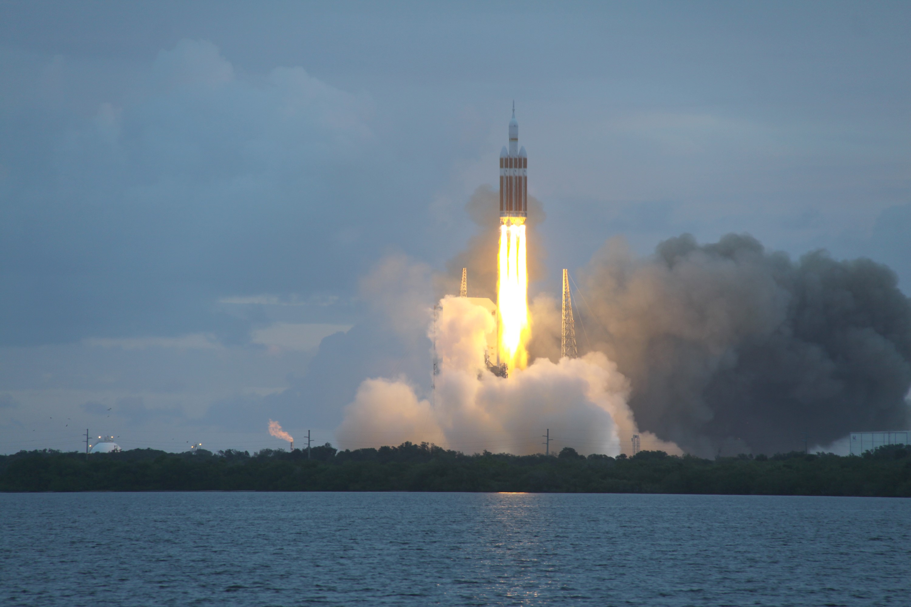 CAPE CANAVERAL, Fla. -- A Delta IV Heavy rocket lifts off from Space Launch Complex 37 at Cape Canaveral Air Force Station in Florida carrying NASA's Orion spacecraft on an unpiloted flight test to Earth orbit. Liftoff was at 7:05 a.m. EST. During the two-orbit, four-and-a-half hour mission, engineers will evaluate the systems critical to crew safety, the launch abort system, the heat shield and the parachute system. For more information, visit www.nasa.gov/orion Photo credit: NASA/Jim Grossman