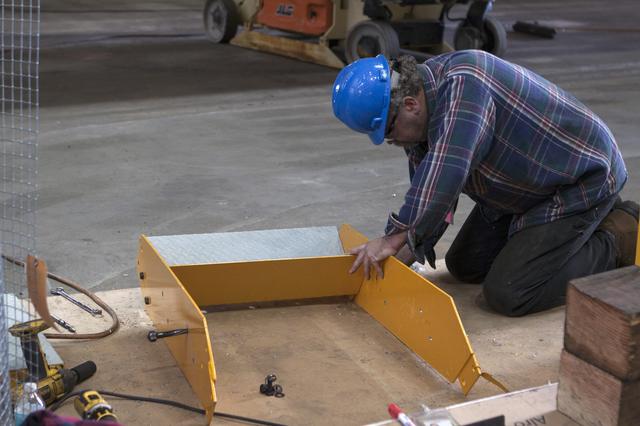 CAPE CANAVERAL, Fla. – Inside the Vehicle Assembly Building at NASA's Kennedy Space Center in Florida, a construction worker continues with refurbishment and upgrades to parts of the 175-ton crane on the ground floor of the transfer aisle. The crane's 45-year-old controls are being upgraded to improve reliability, precision and safety. The Ground Systems Development and Operations Program is overseeing upgrades and modifications to the crane so that it can support lifting needs for NASA and other exploration vehicles, including the agency's Space Launch System and Orion spacecraft. Photo credit: NASA/Kim Shiflett