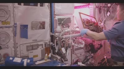 Astronaut Scott Kelly initiated VEG-01 B, the second crop of lettuce, on July 8, 2015, and both Kelly and Astronaut Kjell Lindgren cared for the plants. The crop grew for 33 days. VEG-01 B included one set of six plant pillows planted with red romaine lettuce seeds. On Aug. 10, 2015, the crew harvested and consumed leaves from each plant. This was the first crop grown and consumed in NASA hardware. They harvested the rest of the plant tissue and froze it in the station’s Minus Eighty-Degree Laboratory Freezer for ISS (MELFI) for return to Earth for further study including microbial analysis, antioxidant capacity, mineral analysis and anthocyanin concentration.