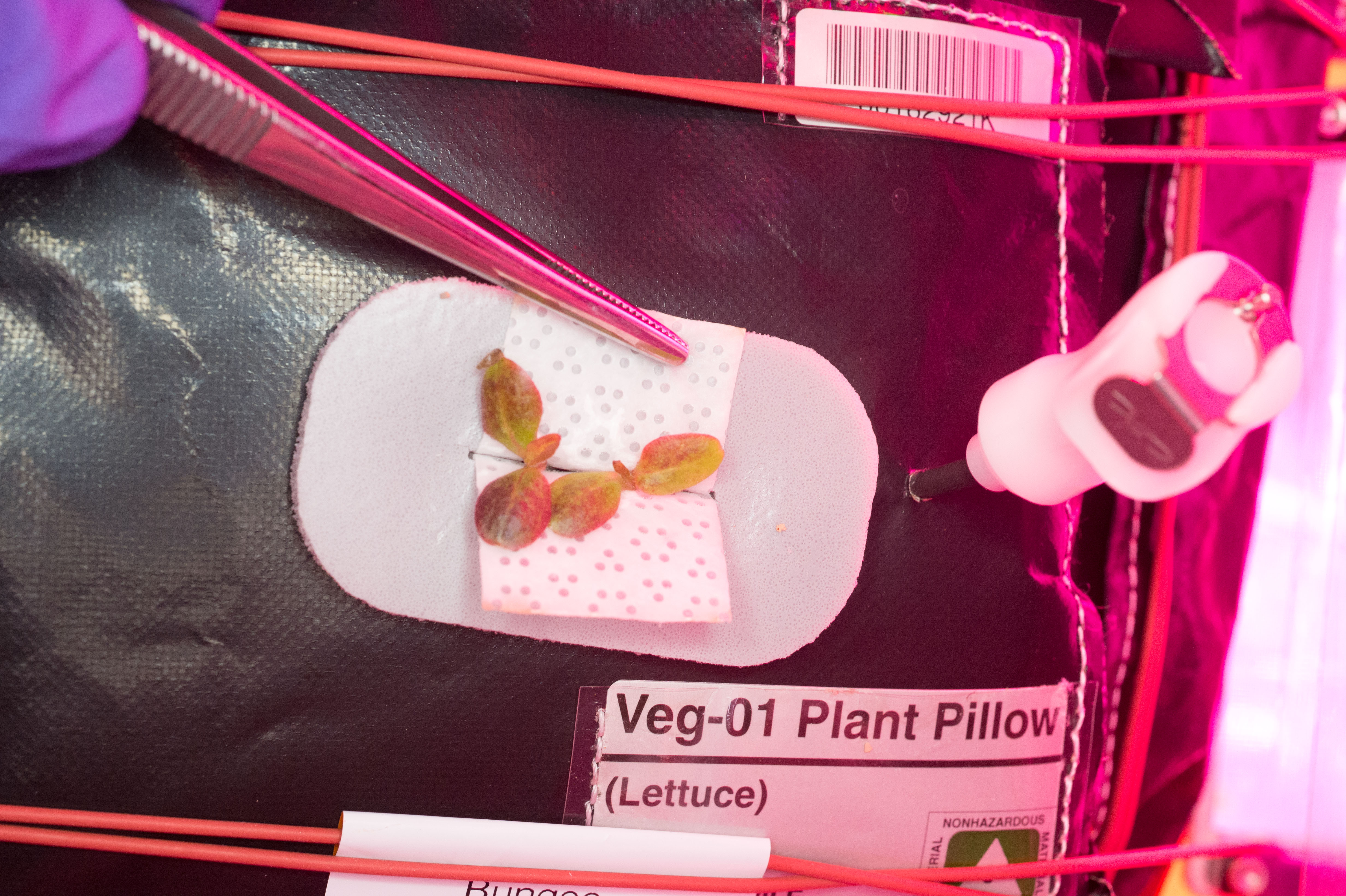 Astronaut Scott Kelly initiated VEG-01 B, the second crop of lettuce, on July, 8, 2015, and both Kelly and Astronaut Kjell Lindgren cared for the plants. The crop grew for 33 days. VEG-01 B included one set of six plant pillows planted with red romaine lettuce seeds. On Aug. 10, 2015, the crew harvested and consumed leaves from each plant. This was the first crop grown and consumed in NASA hardware. They harvested the rest of the plant tissue and froze it in the station’s Minus Eighty-Degree Laboratory Freezer for ISS (MELFI) for return to Earth for further study including microbial analysis, antioxidant capacity, mineral analysis and anthocyanin concentration.