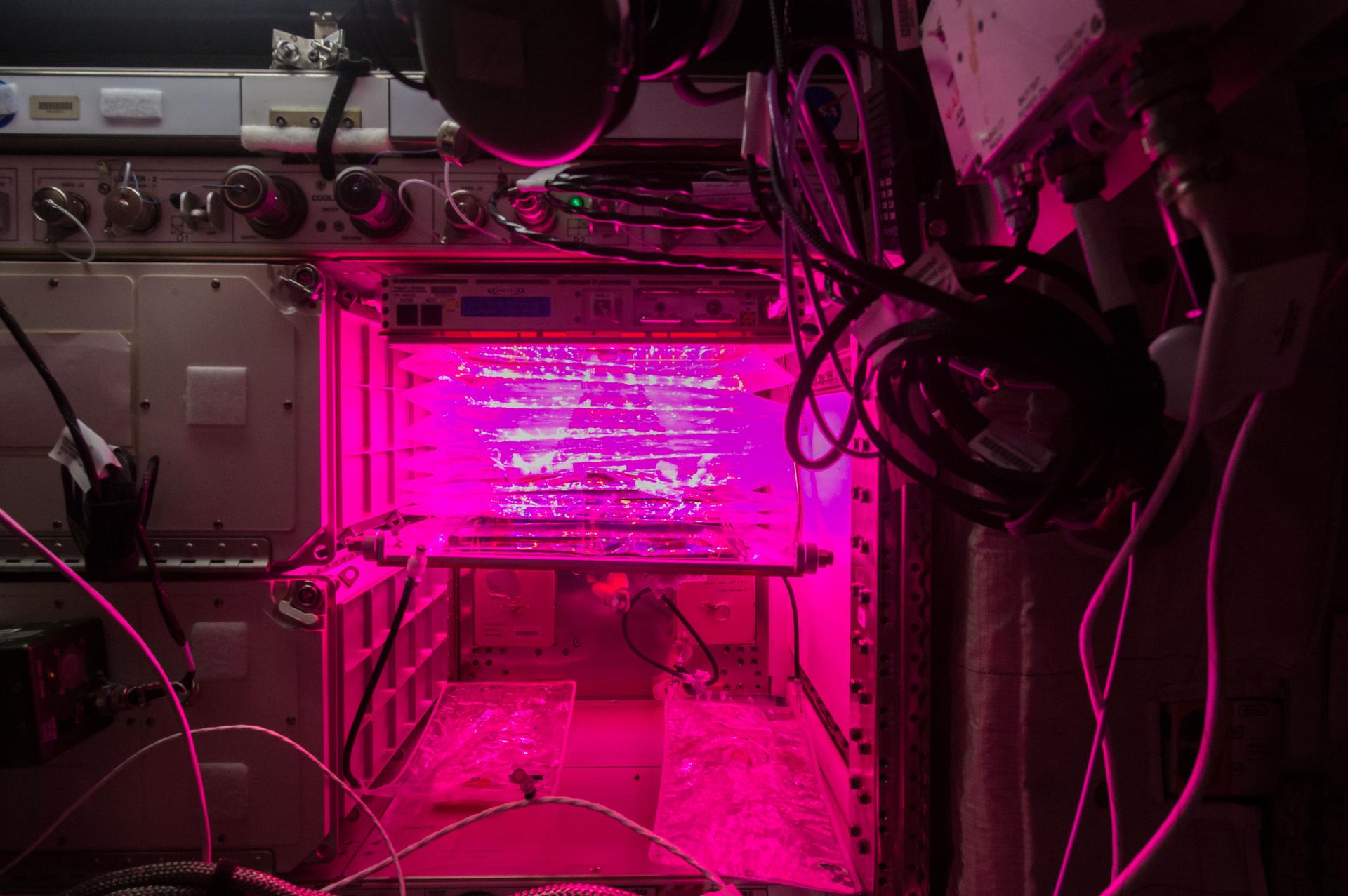 Astronaut Scott Kelly initiated VEG-01 B, the second crop of lettuce, on July, 8, 2015, and both Kelly and Astronaut Kjell Lindgren cared for the plants. The crop grew for 33 days. VEG-01 B included one set of six plant pillows planted with red romaine lettuce seeds. On Aug. 10, 2015, the crew harvested and consumed leaves from each plant. This was the first crop grown and consumed in NASA hardware. They harvested the rest of the plant tissue and froze it in the station’s Minus Eighty-Degree Laboratory Freezer for ISS (MELFI) for return to Earth for further study including microbial analysis, antioxidant capacity, mineral analysis and anthocyanin concentration.