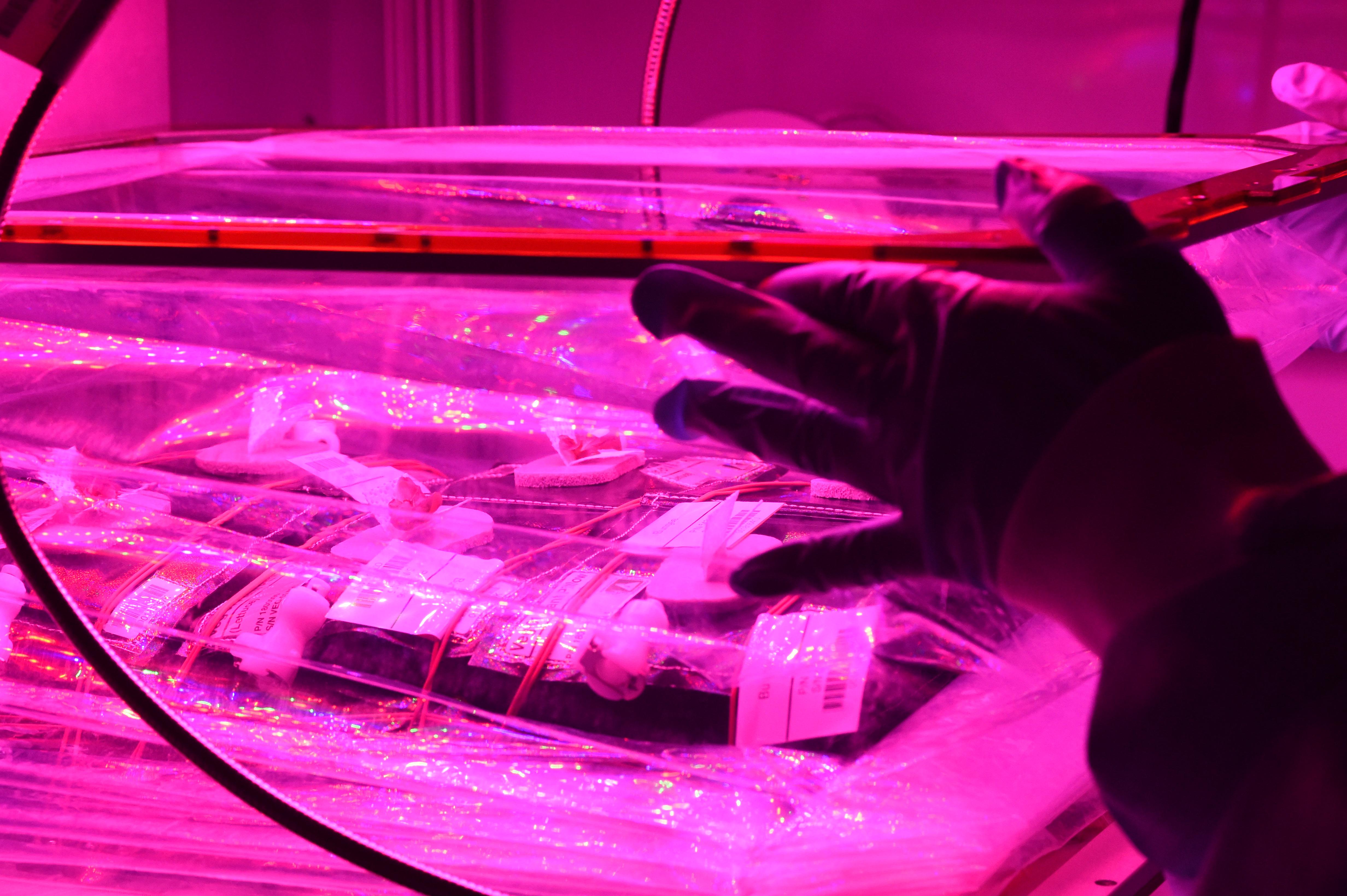Astronaut Scott Kelly initiated VEG-01 B, the second crop of lettuce, on July, 8, 2015, and both Kelly and Astronaut Kjell Lindgren cared for the plants. The crop grew for 33 days. VEG-01 B included one set of six plant pillows planted with red romaine lettuce seeds. On Aug. 10, 2015, the crew harvested and consumed leaves from each plant. This was the first crop grown and consumed in NASA hardware. They harvested the rest of the plant tissue and froze it in the station’s Minus Eighty-Degree Laboratory Freezer for ISS (MELFI) for return to Earth for further study including microbial analysis, antioxidant capacity, mineral analysis and anthocyanin concentration.