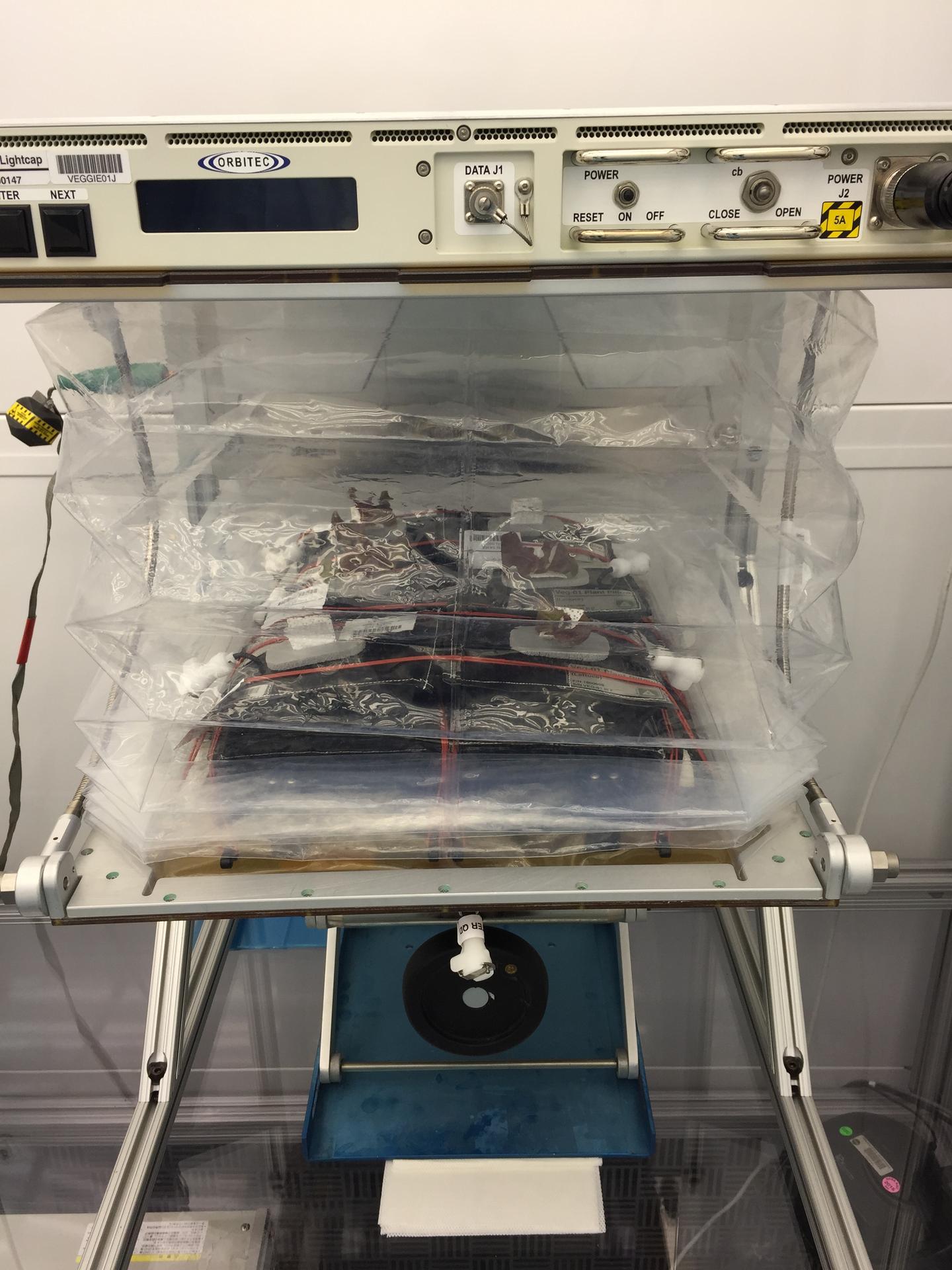 Astronaut Scott Kelly initiated VEG-01 B, the second crop of lettuce, on July, 8, 2015, and both Kelly and Astronaut Kjell Lindgren cared for the plants. The crop grew for 33 days. VEG-01 B included one set of six plant pillows planted with red romaine lettuce seeds. On Aug. 10, 2015, the crew harvested and consumed leaves from each plant. This was the first crop grown and consumed in NASA hardware. They harvested the rest of the plant tissue and froze it in the station’s Minus Eighty-Degree Laboratory Freezer for ISS (MELFI) for return to Earth for further study including microbial analysis, antioxidant capacity, mineral analysis and anthocyanin concentration.