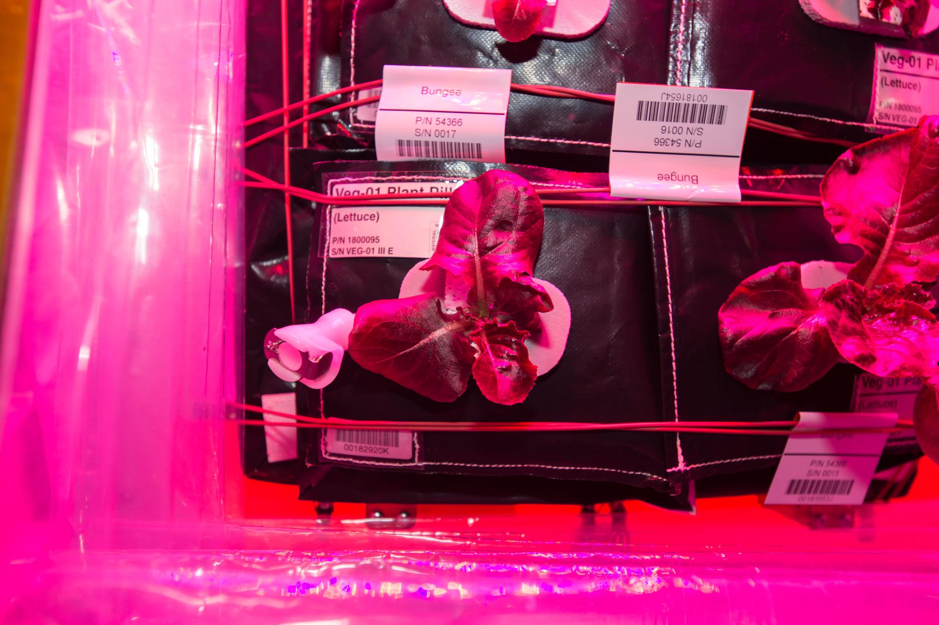 Astronaut Scott Kelly initiated VEG-01 B, the second crop of lettuce, on July, 8, 2015, and both Kelly and Astronaut Kjell Lindgren cared for the plants. The crop grew for 33 days. VEG-01 B included one set of six plant pillows planted with red romaine lettuce seeds. On Aug. 10, 2015, the crew harvested and consumed leaves from each plant. This was the first crop grown and consumed in NASA hardware. They harvested the rest of the plant tissue and froze it in the station’s Minus Eighty-Degree Laboratory Freezer for ISS (MELFI) for return to Earth for further study including microbial analysis, antioxidant capacity, mineral analysis and anthocyanin concentration.