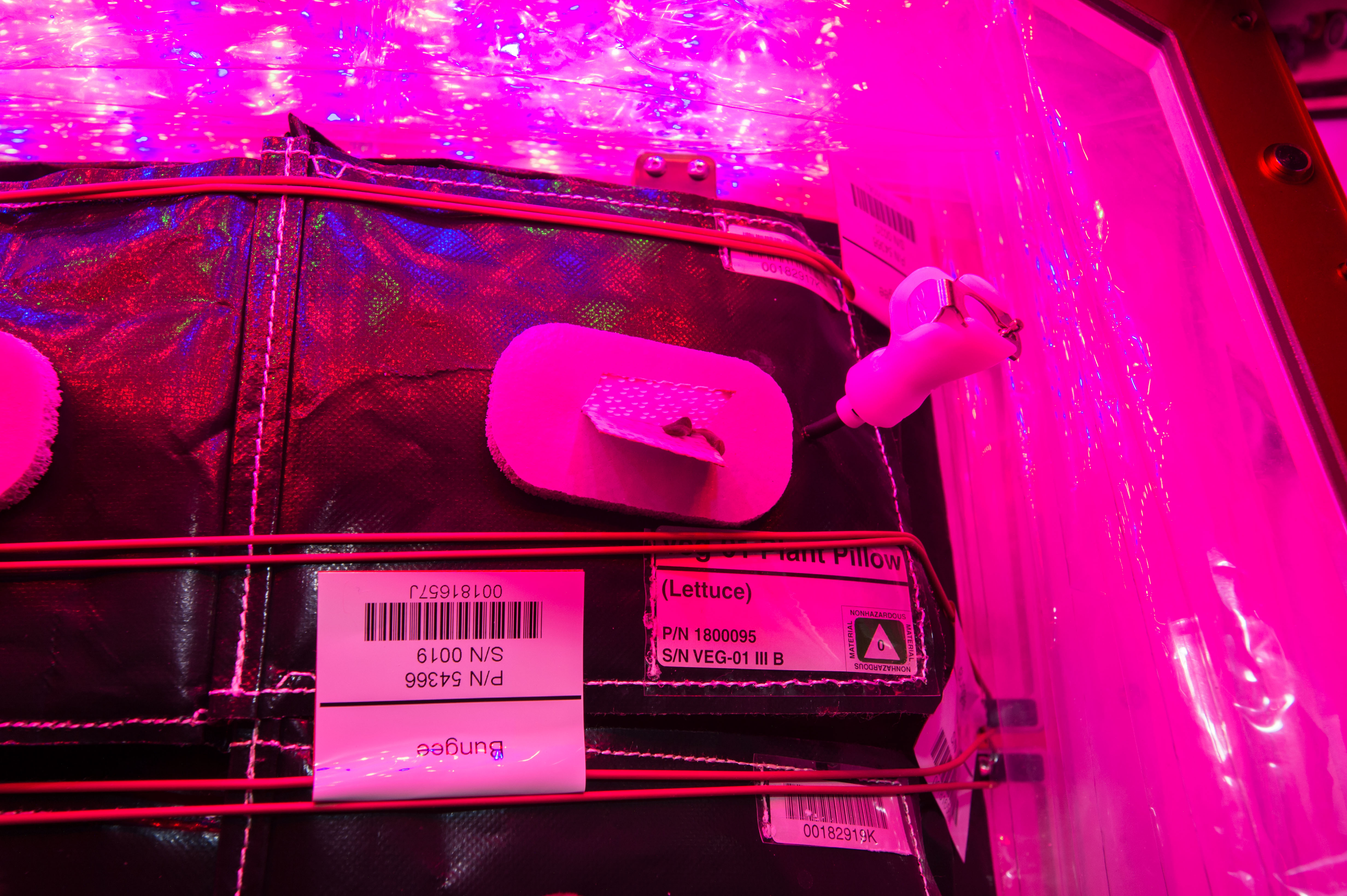 Astronaut Scott Kelly initiated VEG-01 B, the second crop of lettuce, on July, 8, 2015, and both Kelly and Astronaut Kjell Lindgren cared for the plants. The crop grew for 33 days. VEG-01 B included one set of six plant pillows planted with red romaine lettuce seeds. On Aug. 10, 2015, the crew harvested and consumed leaves from each plant. This was the first crop grown and consumed in NASA hardware. They harvested the rest of the plant tissue and froze it in the station’s Minus Eighty-Degree Laboratory Freezer for ISS (MELFI) for return to Earth for further study including microbial analysis, antioxidant capacity, mineral analysis and anthocyanin concentration.