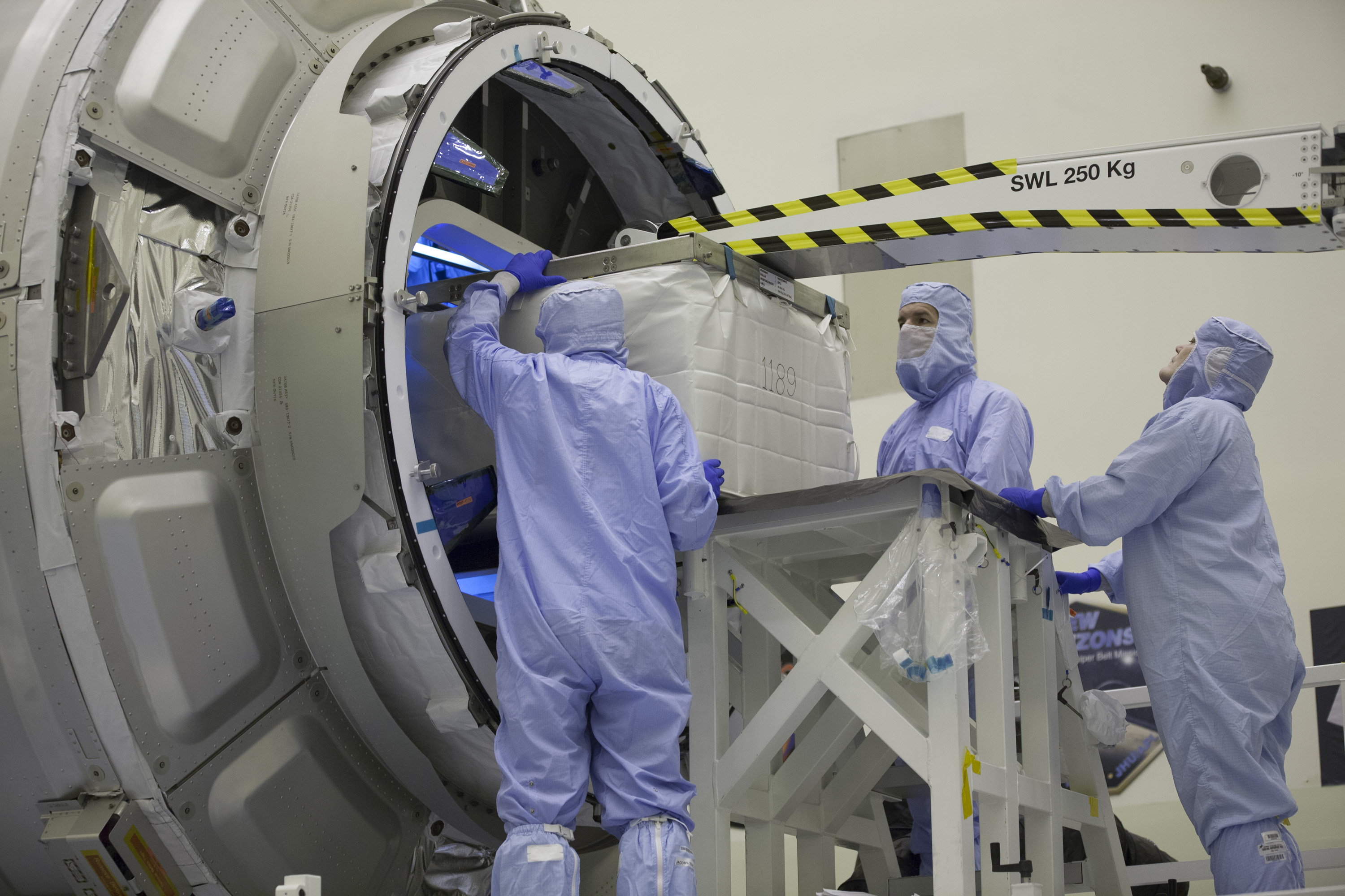 Technicians move cargo into the Orbital ATK CRS-6 pressurized cargo module during late stowage inside the Payload Hazardous Servicing Facility at NASA’s Kennedy Space Center in Florida. The spacecraft is scheduled for the upcoming Orbital ATK Commercial Resupply Services-6 mission to deliver hardware and supplies to the International Space Station. The Cygnus is scheduled to lift off atop a United Launch Alliance Atlas V rocket on March 22.