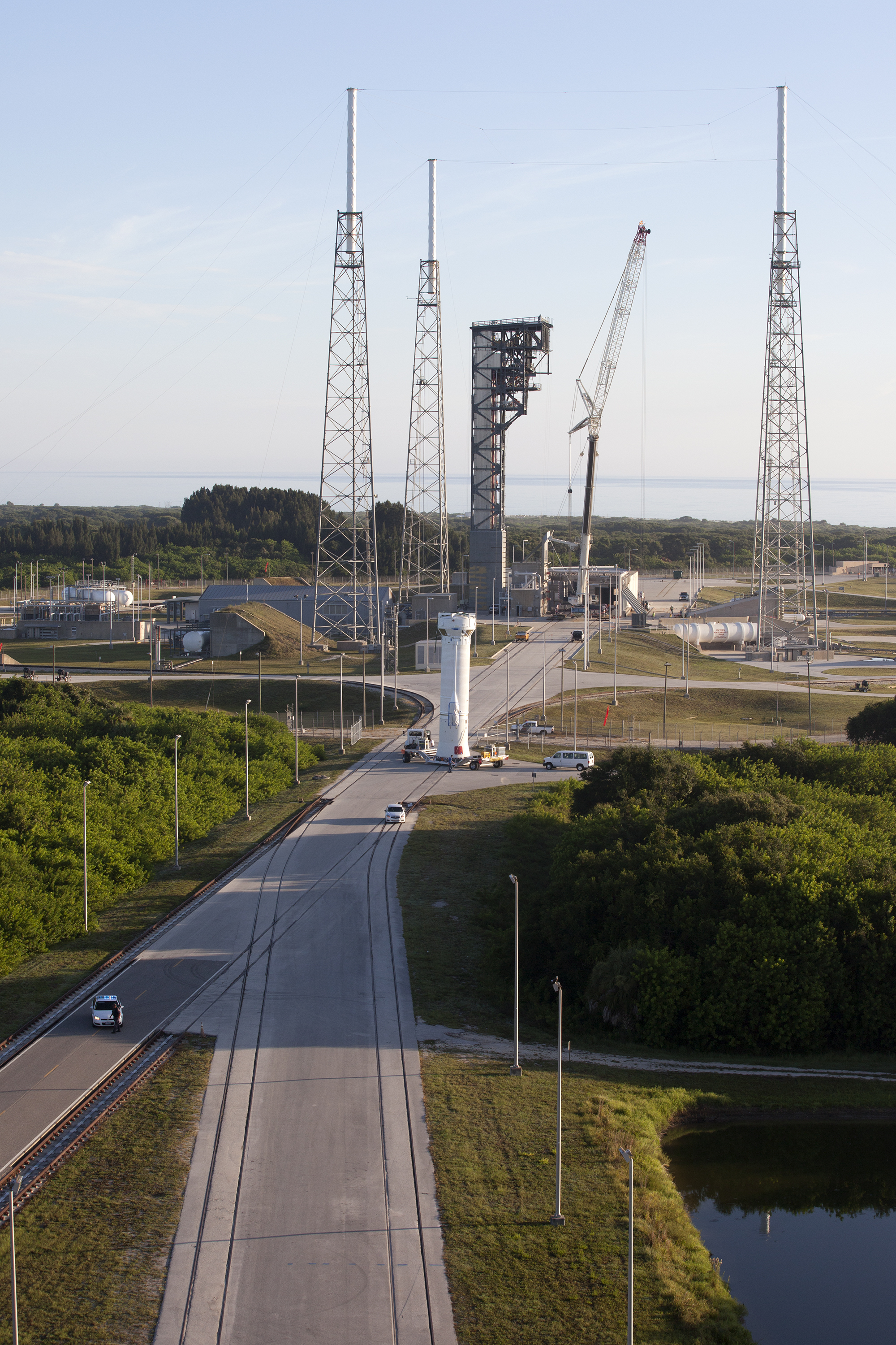 A Centaur upper stage, standing upright on a transporter, arrives at Space Launch Complex 41 on Florida’s Cape Canaveral Air Force Station, where it will be attached to the United Launch Alliance Atlas V rocket first stage booster. The rocket will boost NASA’s Origins, Spectral Interpretation, Resource Identification, Security-Regolith Explorer, or OSIRIS-REx spacecraft. Targeted for liftoff Sept. 8, 2016, OSIRIS-Rex will be the first U.S. mission to sample an asteroid, retrieve at least two ounces of surface material and return it to Earth for study. The asteroid, Bennu, may hold clues to the origin of the solar system and the source of water and organic molecules found on Earth.