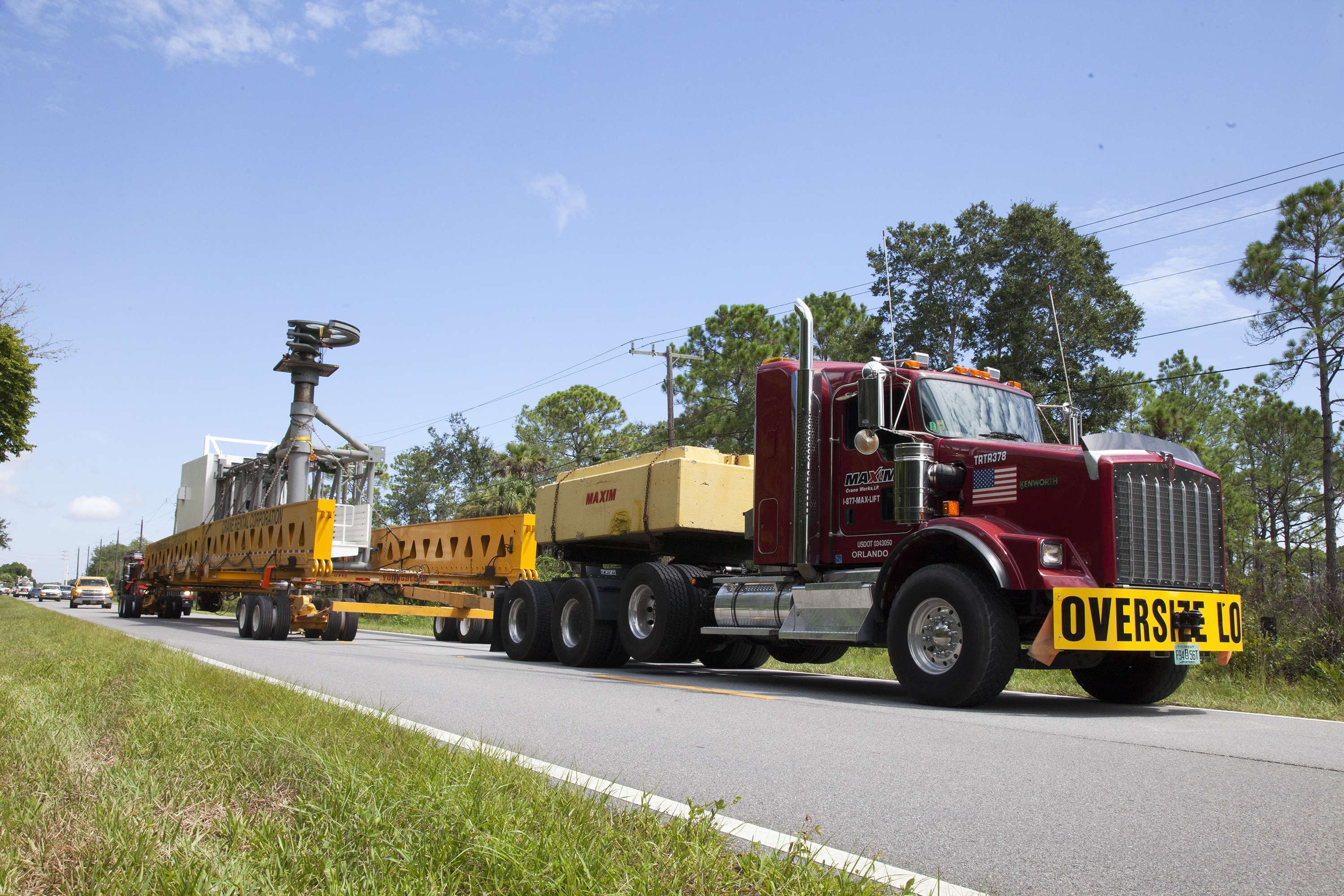 A heavy-lift transport truck, carrying the Crew Access Arm for Space Launch Complex 41, departs from Oak Hill, Florida, and heads to NASA’s Kennedy Space Center in Florida. The arm will be installed on the Complex 41 Crew Access Tower at Cape Canaveral Air Force Station. It will be used as a bridge by astronauts to board Boeing's CST-100 Starliner spacecraft as it stands on the launch pad atop a United Launch Alliance Atlas V rocket.