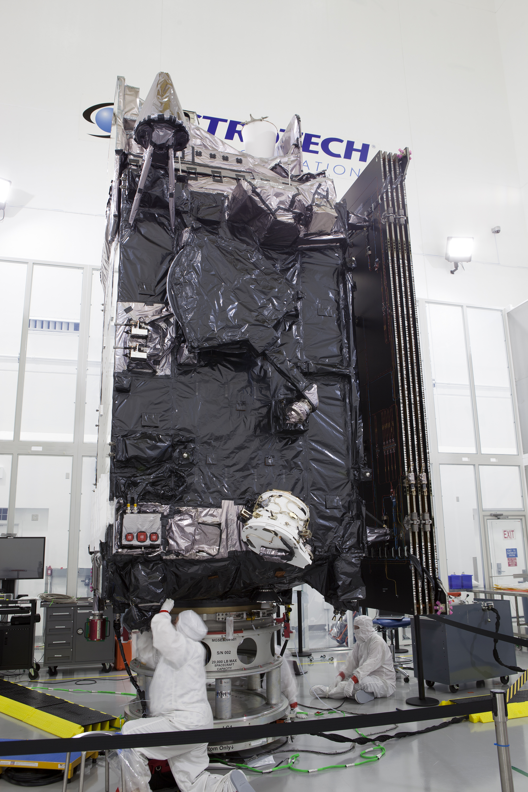 The Geostationary Operational Environmental Satellite (GOES-R) is undergoing final launch preparations prior to fueling inside the Astrotech payload processing facility in Titusville, Florida near NASA’s Kennedy Space Center. GOES-R will be the first satellite in a series of next-generation NOAA GOES Satellites. The spacecraft is to launch aboard a United Launch Alliance Atlas V rocket in November.