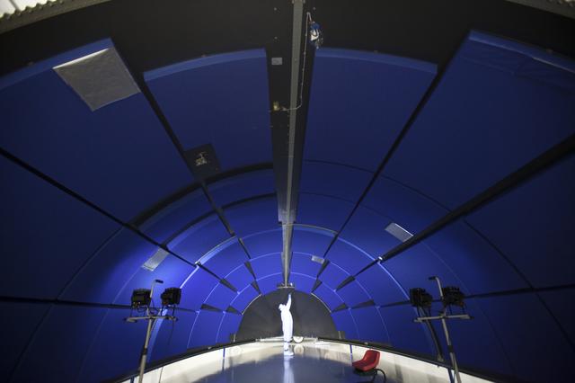 Team members with United Launch Alliance (ULA) inspect the first half of the fairing for the Geostationary Operational Environmental Satellite (GOES-R) inside the Astrotech payload processing facility in Titusville, Florida near NASA’s Kennedy Space Center. GOES-R will be the first satellite in a series of next-generation NOAA GOES Satellites. The spacecraft is to launch aboard a ULA Atlas V rocket in November.