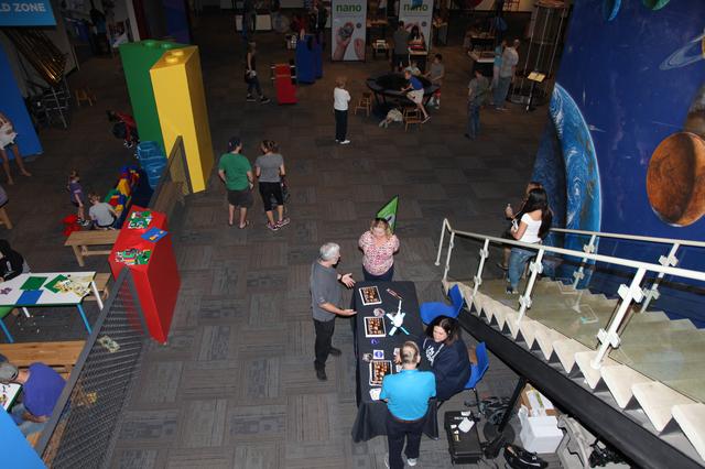 Visitors talk to representatives from NASA’s Ground Systems Development and Operations Program (GSDO) at the Reuben H. Fleet Science Center in San Diego, California. Melissa Jones, seated in blue, GSDO Landing and Recovery director, speaks to visitors during the “Genius in the House” event. GSDO participated in outreach events before the start of the Orion Underway Recovery Test 5 (URT-5) using a test version of the Orion crew module in the Pacific Ocean off the coast of California. URT-5 will allow NASA, Orion manufacturer Lockheed Martin and the U.S. Navy to demonstrate and evaluate the recovery processes, procedures, hardware and personnel necessary for recovery of the Orion crew module on its return from a deep space mission. Orion is the exploration spacecraft designed to carry astronauts to destinations not yet explored by humans, including an asteroid and NASA’s Journey to Mars. It will have emergency abort capability, sustain the crew during space travel and provide safe re-entry from deep space return velocities. Orion is scheduled to launch atop NASA’s Space Launch System rocket in 2018. For more information, visit http://www.nasa.gov/orion.