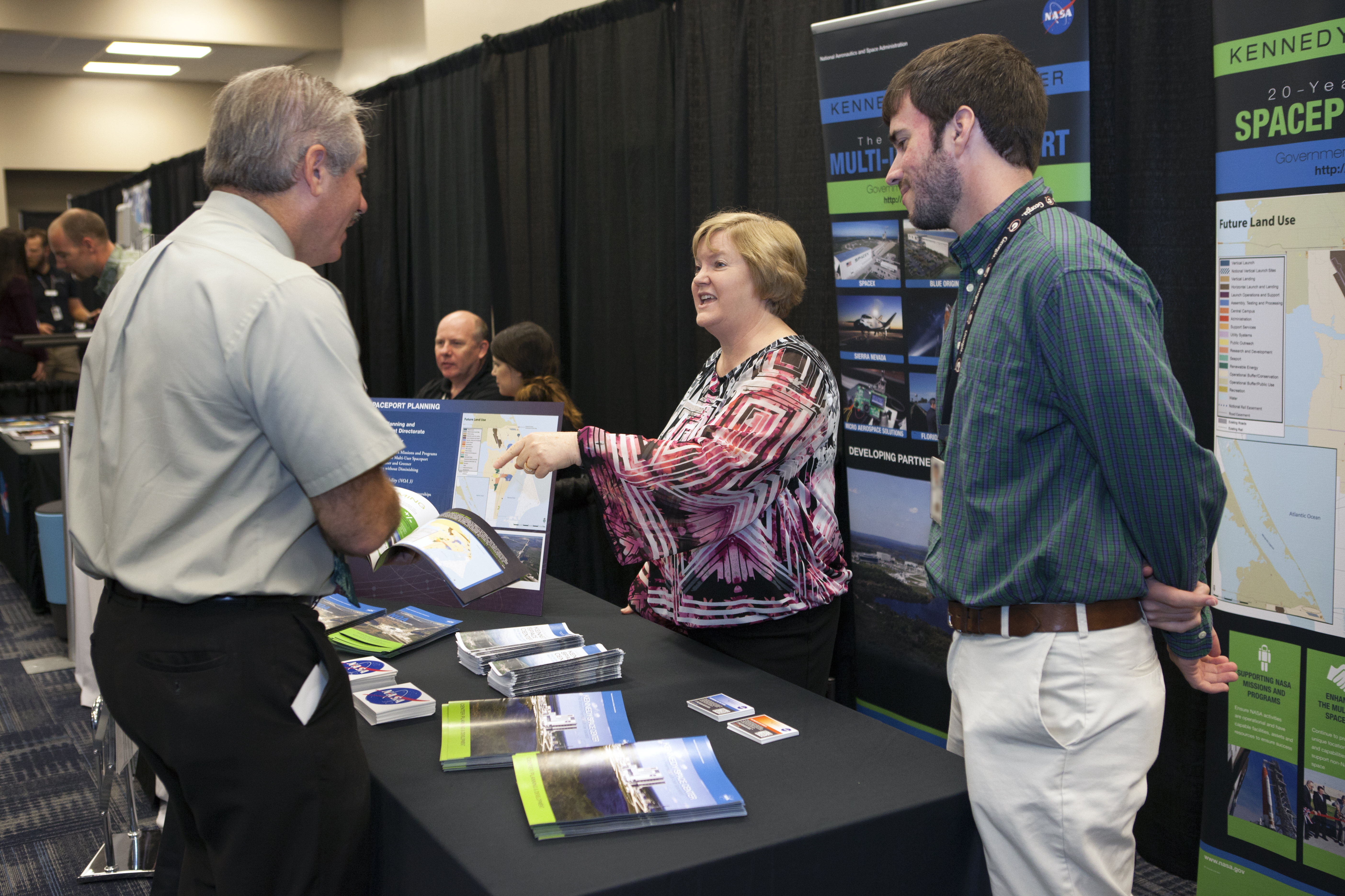 Visitors stop by a NASA booth in the Space Station Processing Facility conference center at NASA's Kennedy Space Center during the 2016 Innovation Expo. Now in its fifth year, the purpose of the Innovation Expo is to help foster innovation and creativity among Kennedy employees who are encouraged to look for ways to do their work better and to propose concepts for tackling future mission needs.