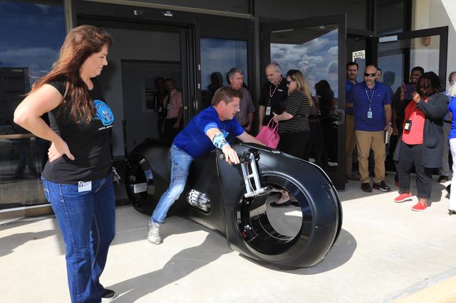 During the 2016 Innovation Expo at NASA's Kennedy Space Center in Florida, representatives from Parker Brothers, known for designing and building outrageous custom vehicles, spoke to Kennedy employees about their creative thinking processes. Employees also were given an up-close look at their Neutron bike, featured in the movie “Tron.”