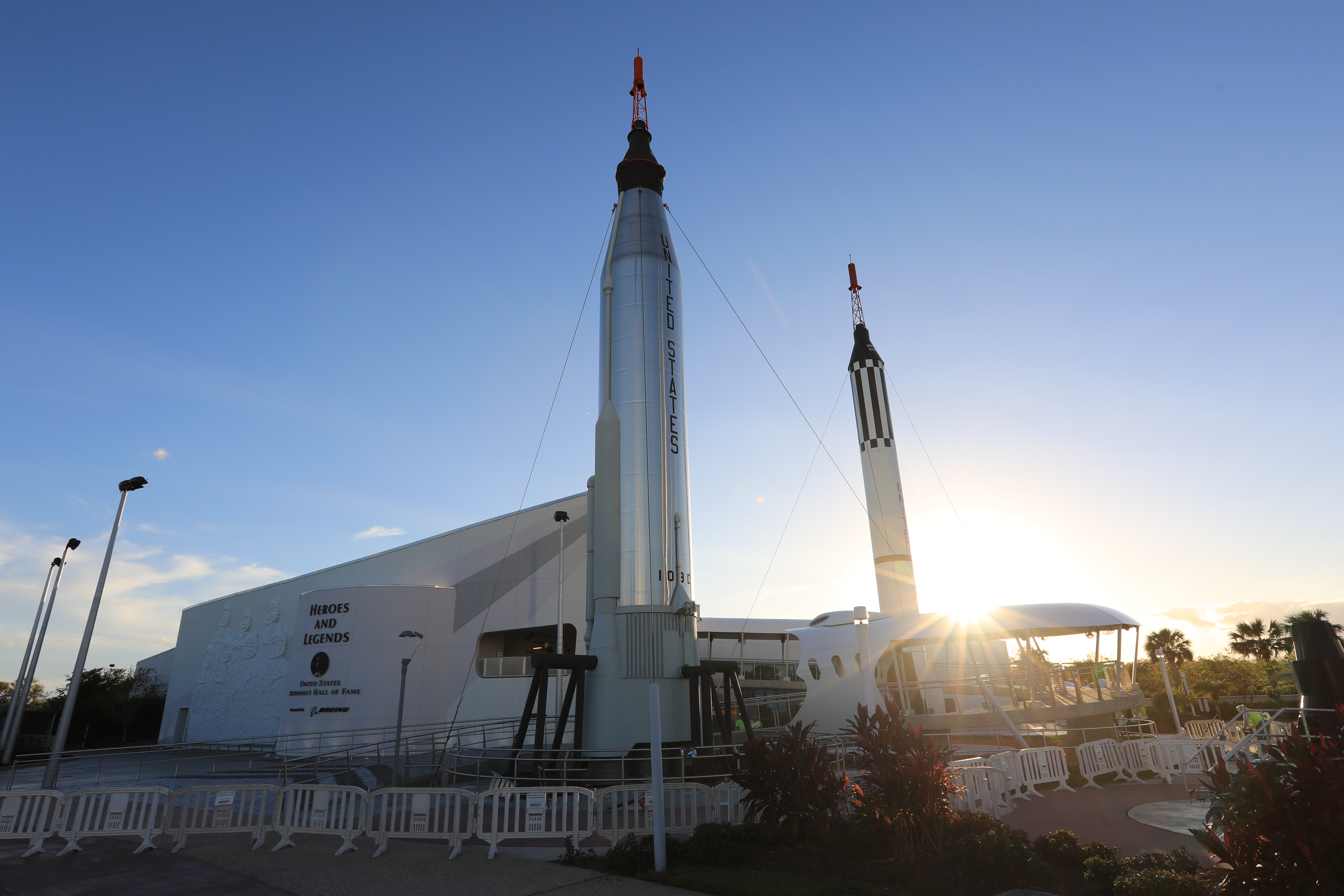The Heroes and Legends attraction at the Kennedy Space Center Visitor Complex is just inside the entrance to set the stage as guests arrive. In addition to displays honoring the Americans currently enshrined in the U. S. Astronaut Hall of Fame. The new facility looks back to the pioneering efforts of Mercury, Gemini and Apollo. It sets the stage by providing the background and context for space exploration and the legendary men and women who pioneered the nation's journey into space.