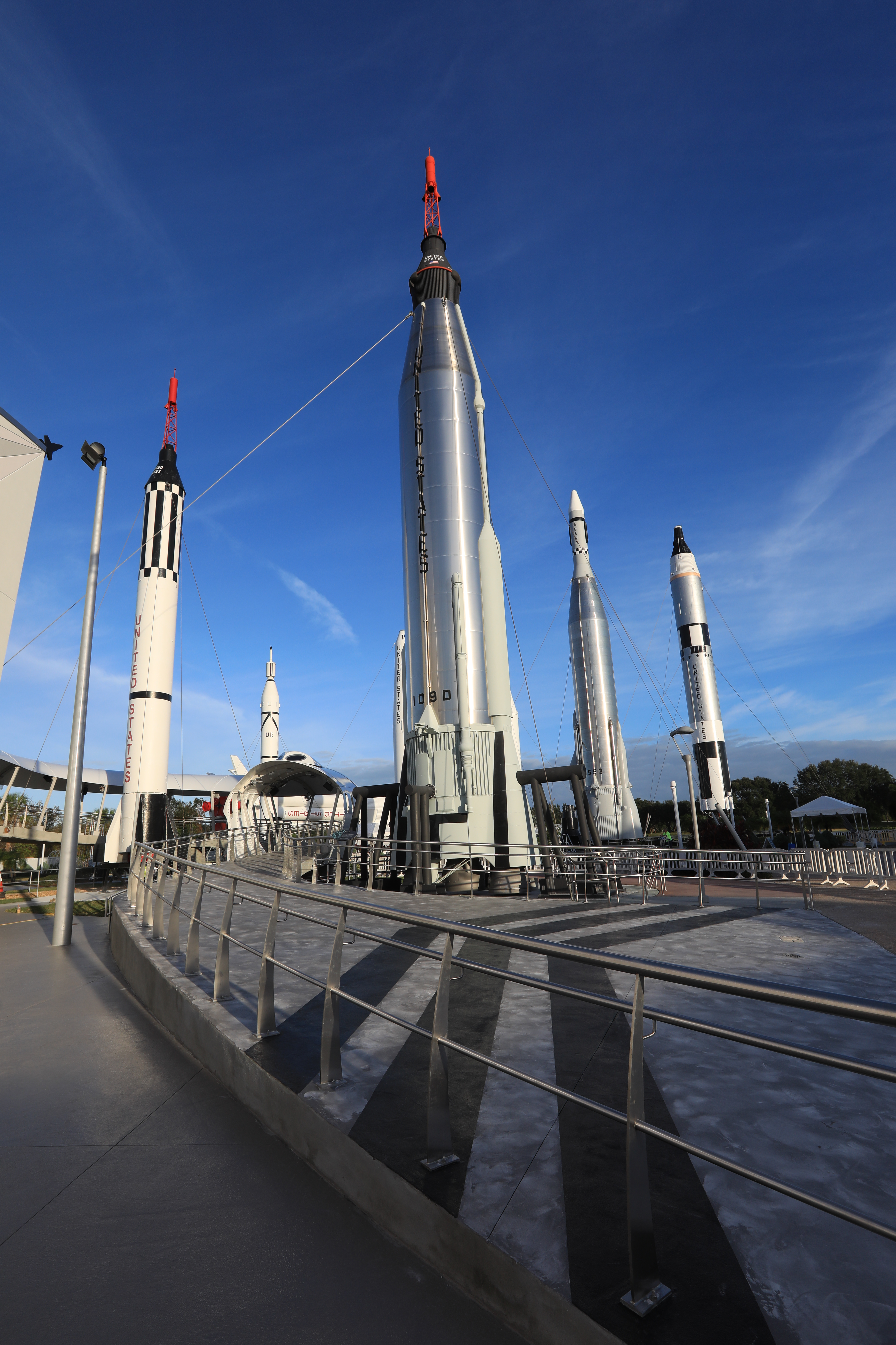 Launch vehicles used by NASA in its history of exploring space are displayed in the "Rocket Garden" adjacent to the new Heroes and Legends attraction at the Kennedy Space Center Visitor Complex. The new facility includes the U.S. Astronaut Hall of Fame and looks back to the pioneering efforts of Mercury, Gemini and Apollo. It sets the stage by providing the background and context for space exploration and the legendary men and women who pioneered the nation's journey into space.
