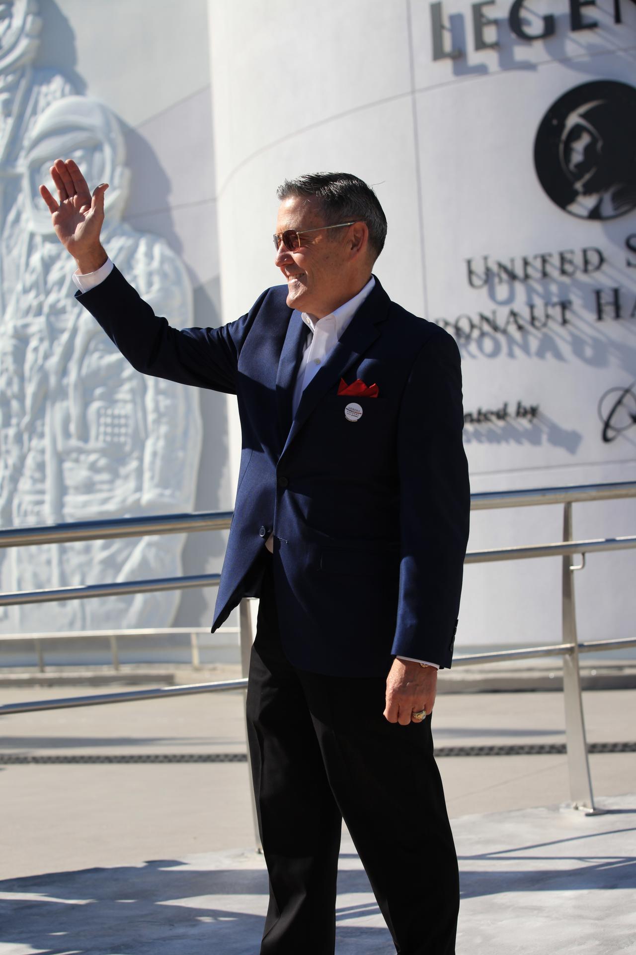 Kennedy Space Center Director Bob Cabana is introduced along with other members of the U.S. Astronaut Hall of Fame during ceremonies opening the Heroes and Legends attraction at the Kennedy Space Center Visitor Complex. The new facility includes the U.S. Astronaut Hall of Fame and looks back to the pioneering efforts of Mercury, Gemini and Apollo. It sets the stage by providing the background and context for space exploration and the legendary men and women who pioneered the nation's journey into space.