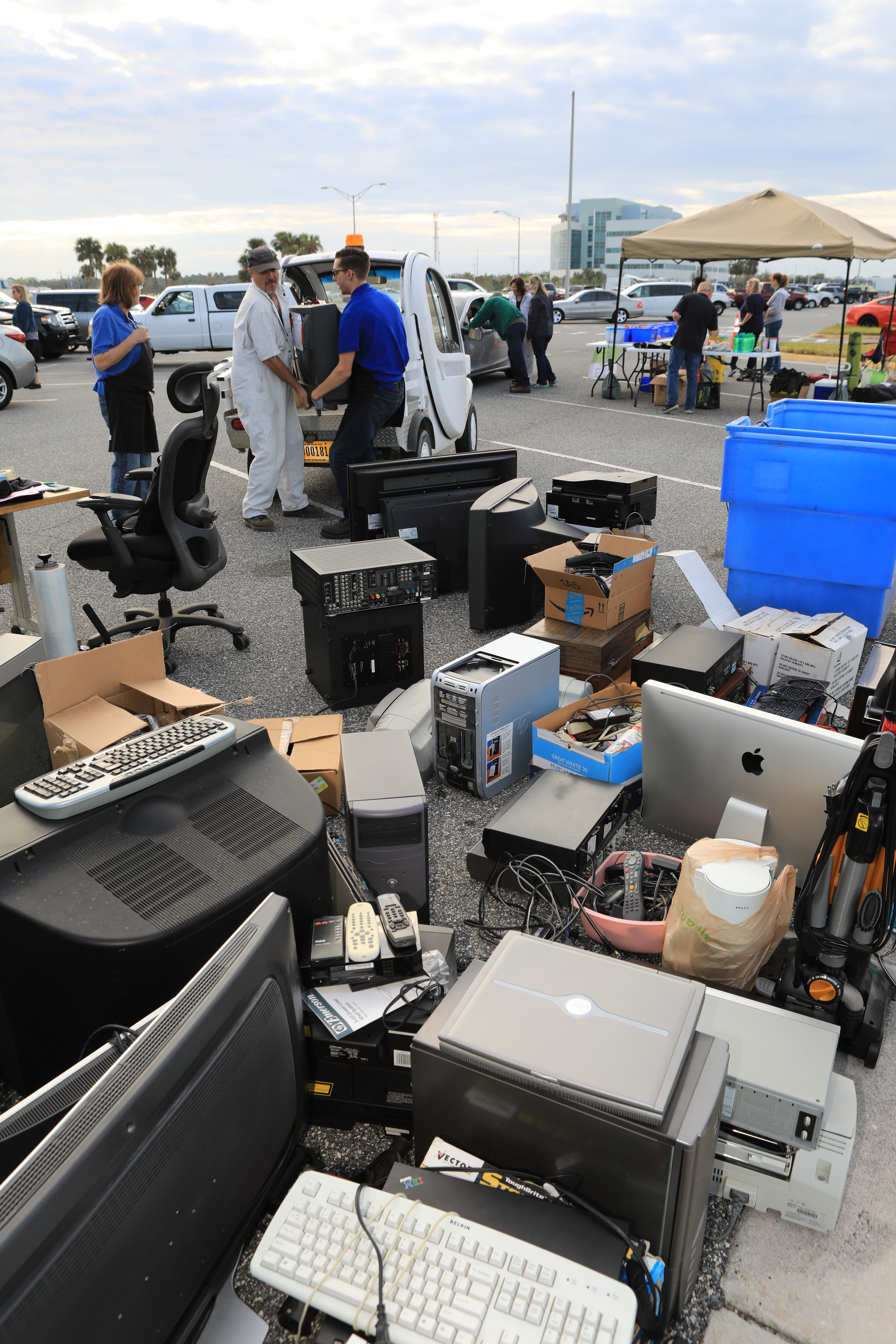 Computers, monitors, vacuum cleaners and other electronics have been donated by employees at NASA's Kennedy Space Center in Florida in conjunction with America Recycles Day. America Recycles Day is a nationally recognized initiative dedicated to promoting recycling in the United States. Kennedy partnered with several organizations in order to donate as many of the items as possible to those who could use them the most in the Space Coast community. Space center personnel brought in electronic waste, gently used household goods, clothing and more. The two-day event was sponsored by Kennedy's Sustainability team.